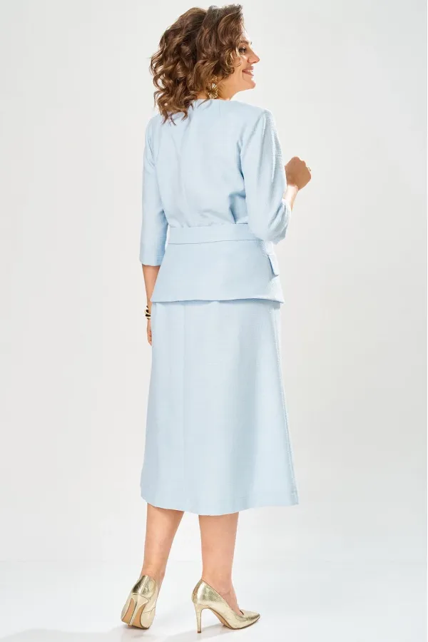 Украшением платья служит сьемная баска на поясе, с пряжкой в цвете золота и декоративными клапанами.