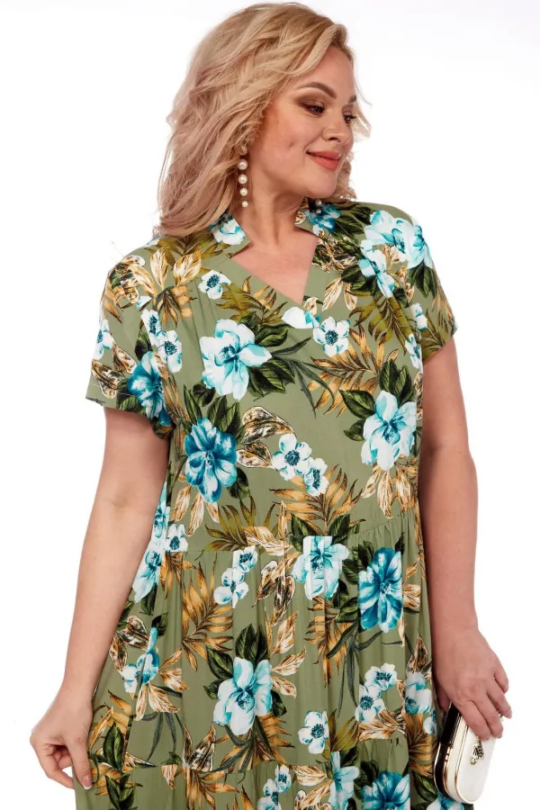 Платье выполнено из мягкой штапельной ткани устойчивой окраски. Рекомендуется вертикальная сушка.