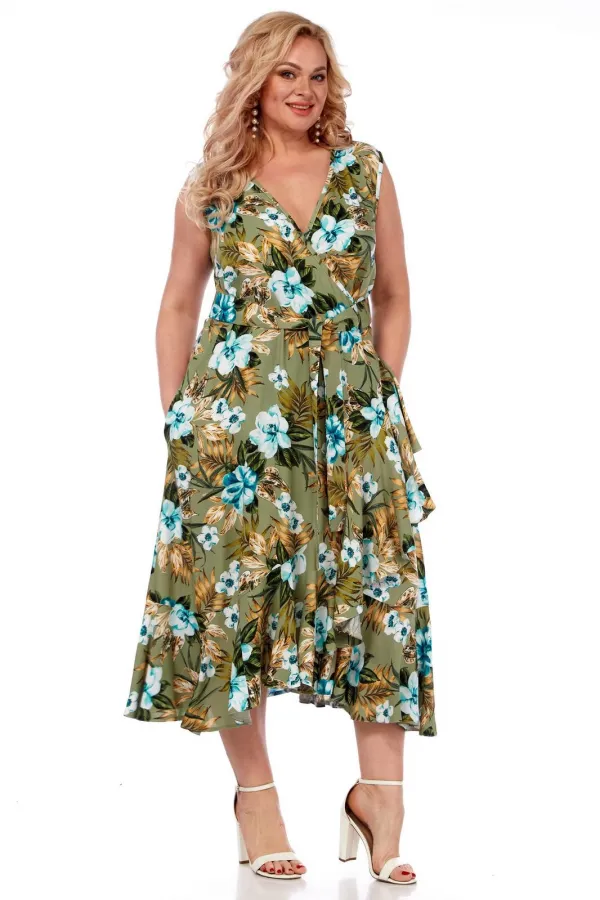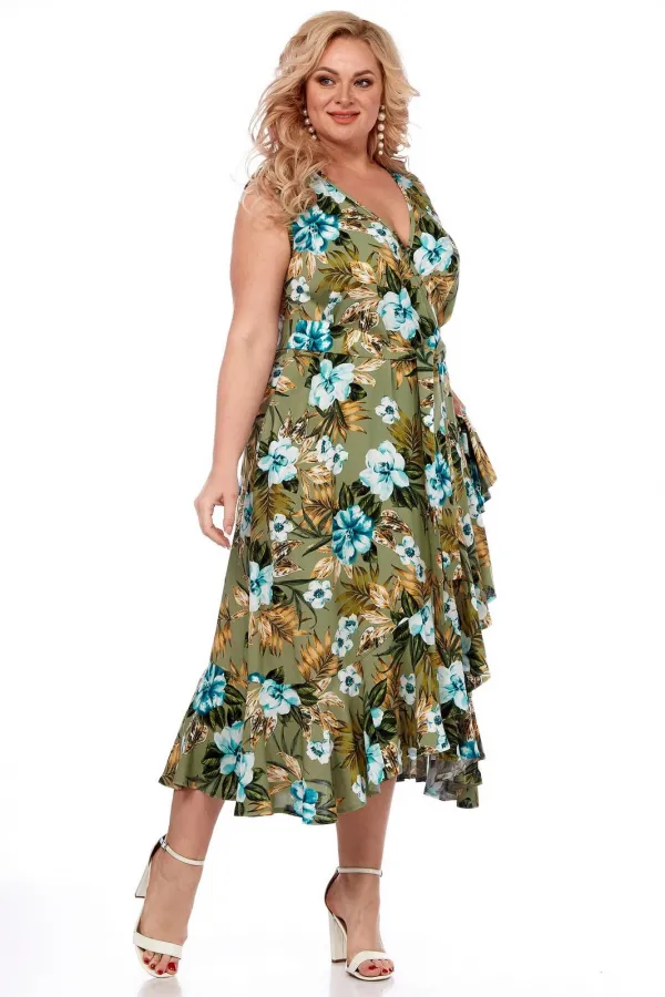 Платье выполнено из мягкой штапельной ткани устойчивой окраски. Рекомендуется вертикальная сушка.