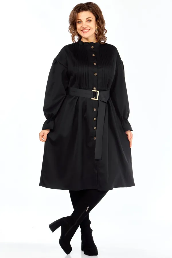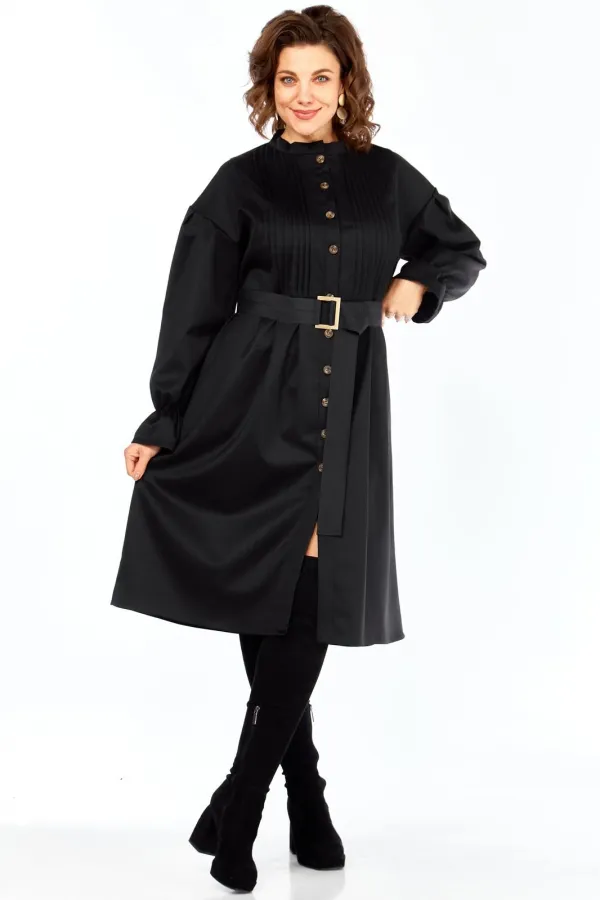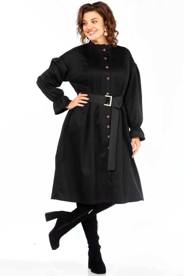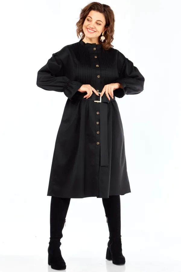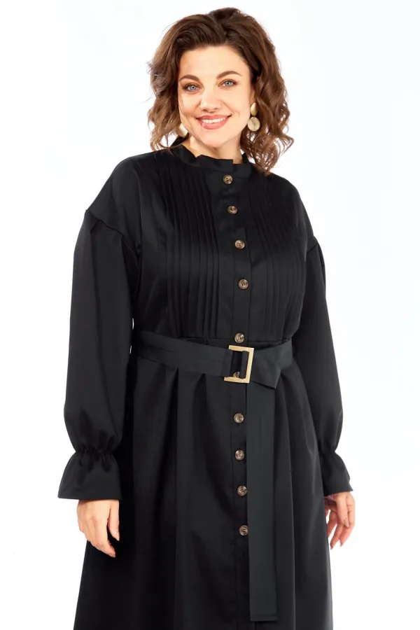 Натуральный состав ткани позволяет коже дышать, обеспечивая максимальный комфорт на протяжении всего дня. Платье свободного кроя, с округлой горловиной обработанной воротником стойкой. Застежка центральная на петли и пуговицы позволяет регулировать глубину выреза. Рукав платья со спущенным плечом и манжетой на резинке создают непринужденный и элегантный силуэт. Центральная часть полочки обработана односторонними складками, линия талии подчеркнута легкой сборкой (защипы). В комплекте идет пояс, который подчеркивает женственные формы, и при этом не сковывает движений. В платье есть внутренние карманы в боковых швах, что придает удобства платью.Ткань не тянется. Длина платья 106 см, длина рукава 69см с учетом приспущенного плеча.