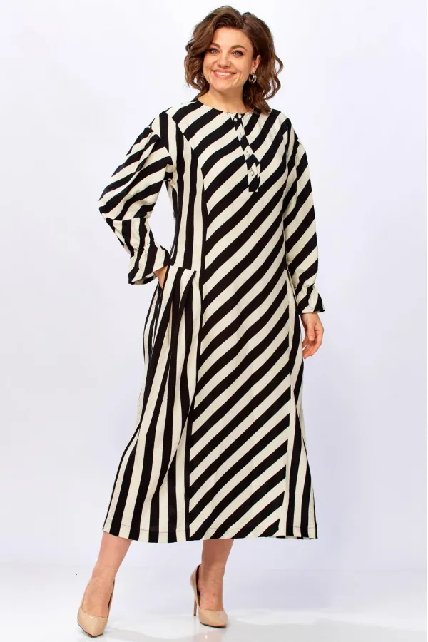 3. Для дам с формами: крой и направление полос мастерски моделируют гармоничный силуэт.