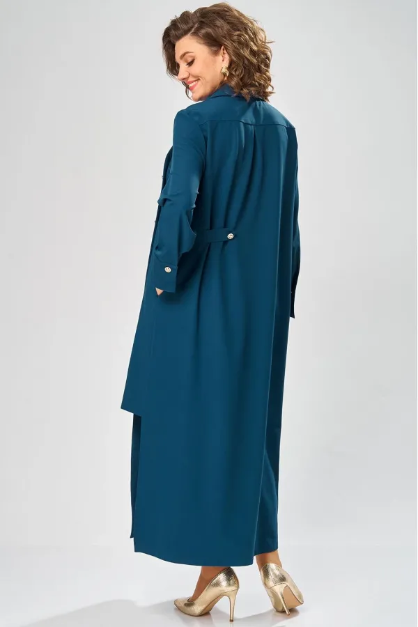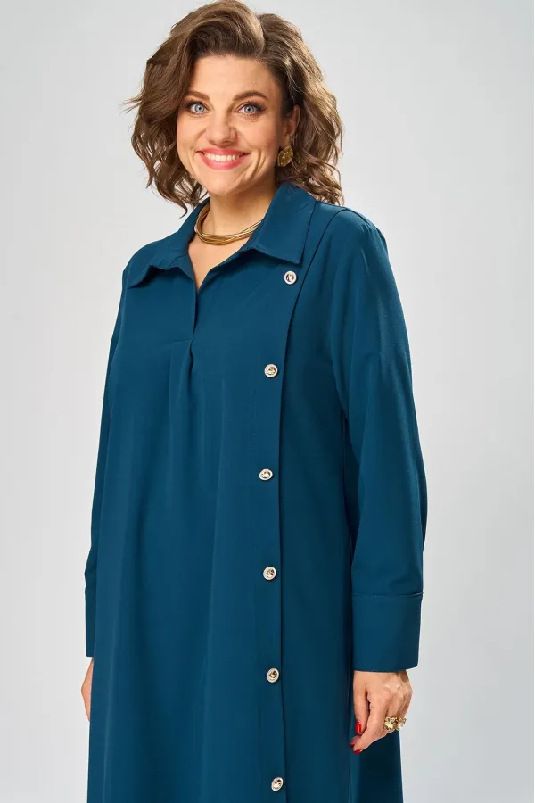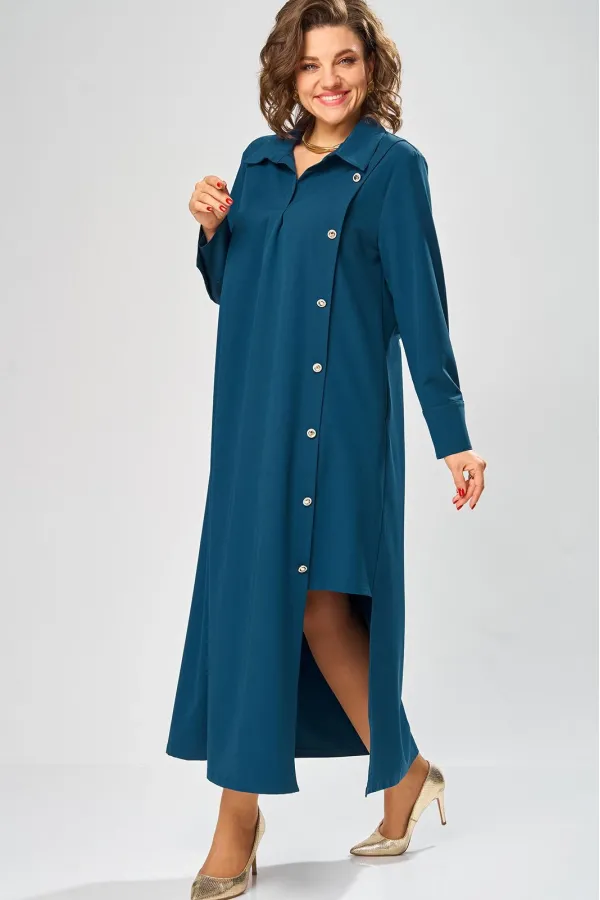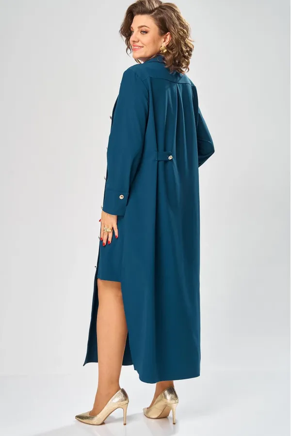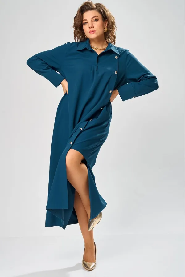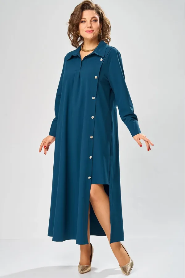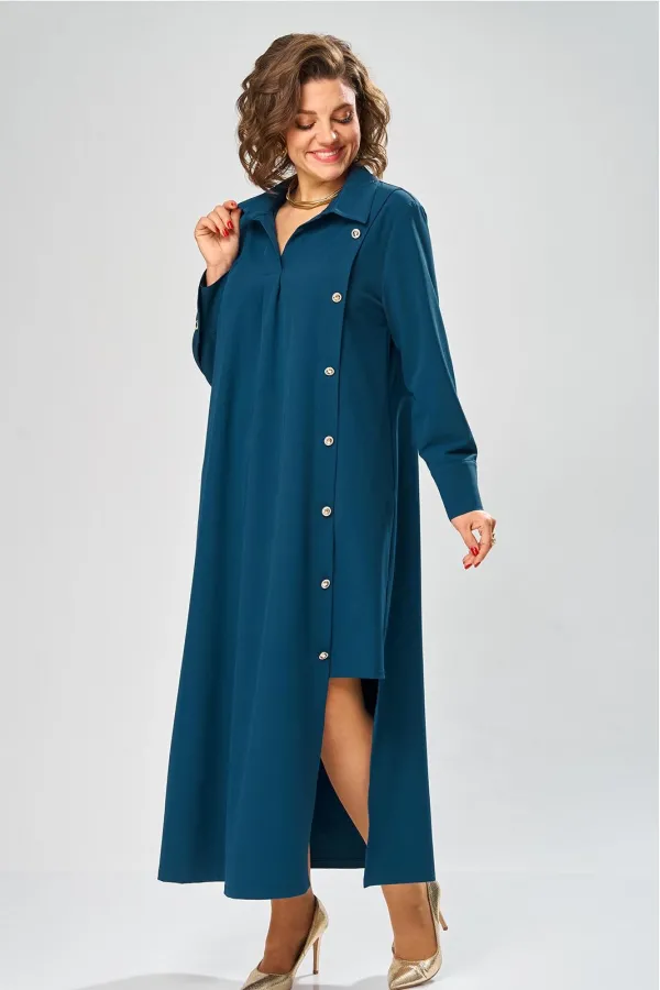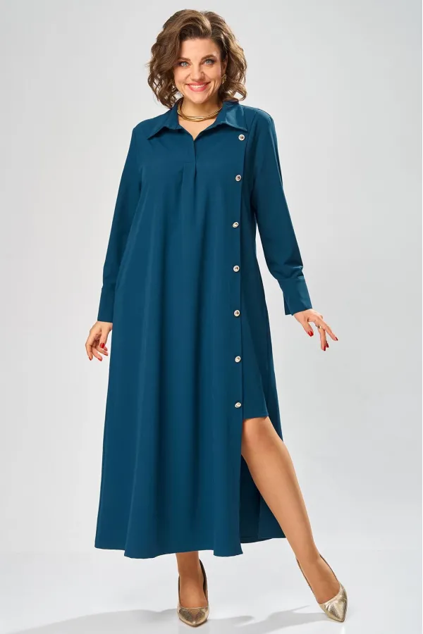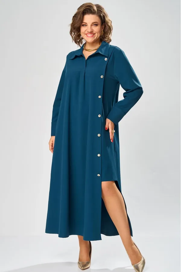 Платье умеренного «А» силуэта, свободный крой, что позволяет рекомендовать их женщинам с самыми разными типами фигур. Плечо слегка спущенное, рукав рубашечный на пате. По горловине отложной воротник со стойкой. В боковых швах, для удобства, выполнены карманы. Длина макси, идеально подходит для любого типа фигуры и стройнит ее.