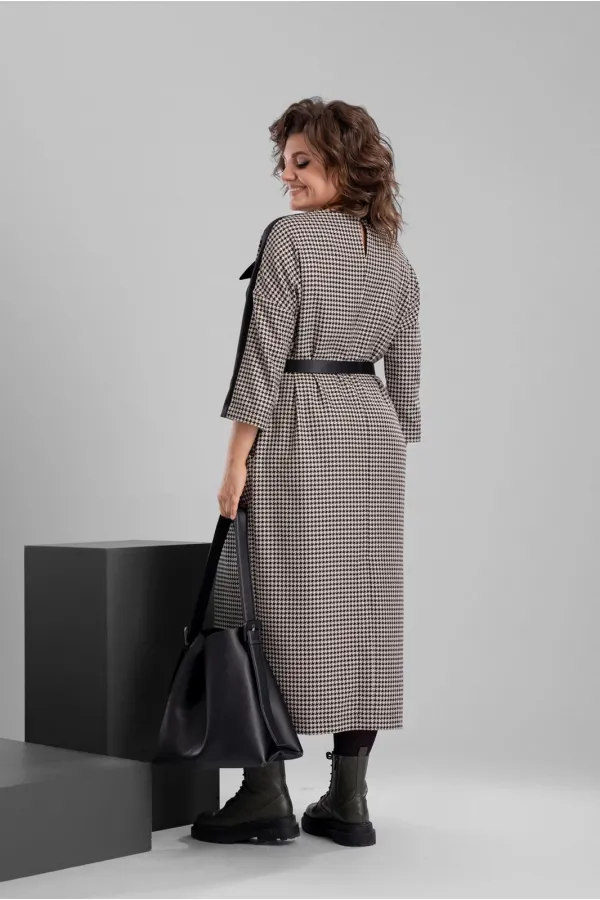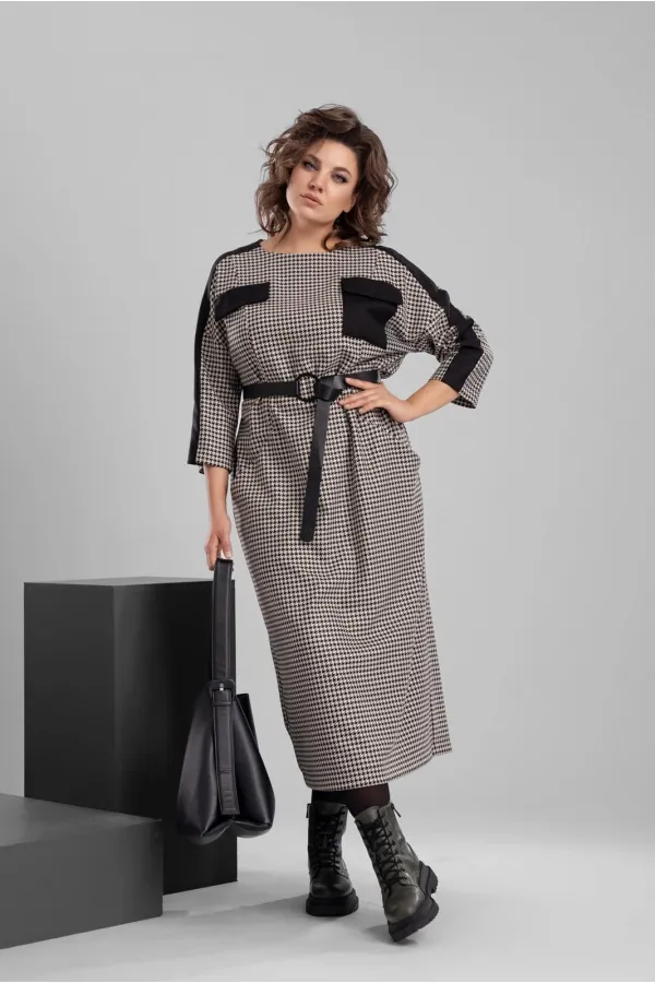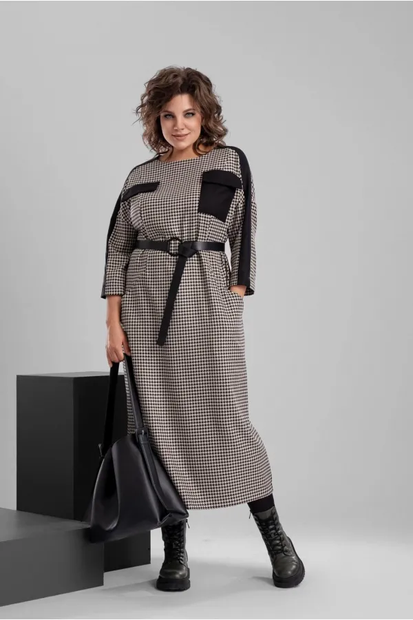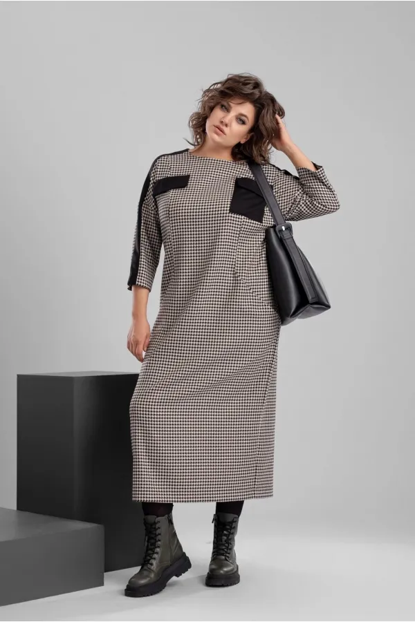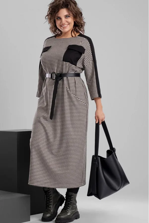 Платье женское полуприлегающего силуэта. Вырез горловины неглубокий, округлой формы. По спинке застежка на пуговицу. Рукава отрезные на базе цельнокроеных, по линии плеча и по всей длине рукава втачная деталь из отдело... Читать далее...