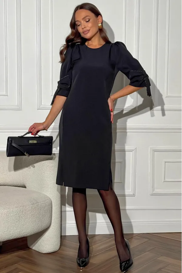 Платье полуприлегающего силуэта, длинной до середины колена.