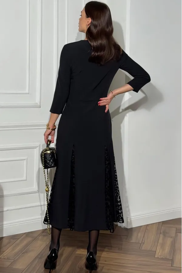 Рукава втачные, одно-шовные, длинной 3/4.Длина платья — 129,5 см