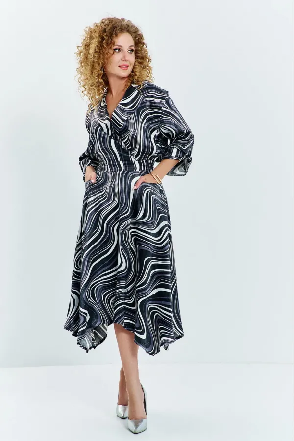Код Товара: 633 черный белый + принт (волна) Euromoda