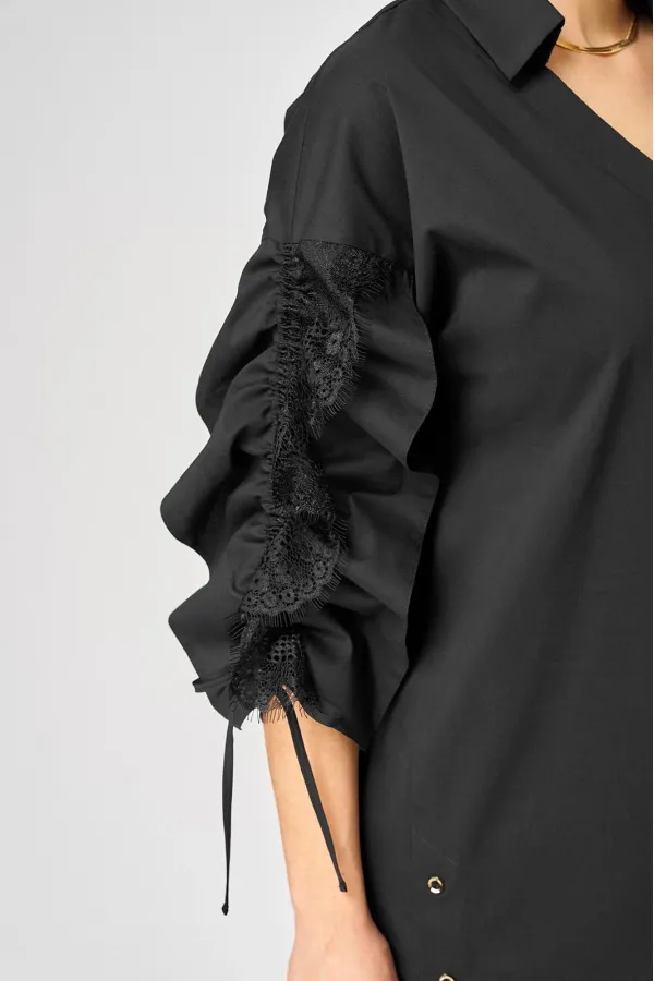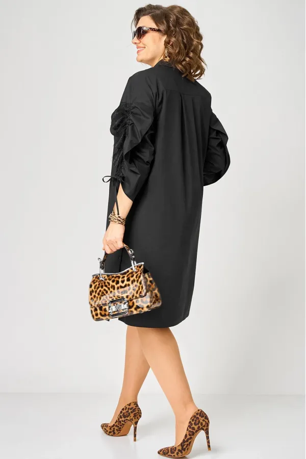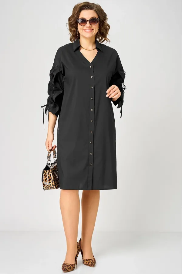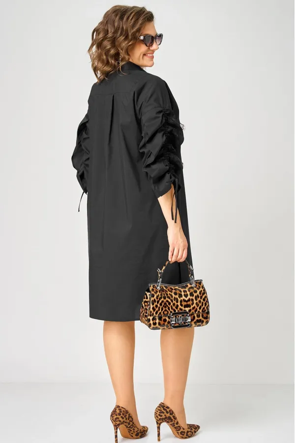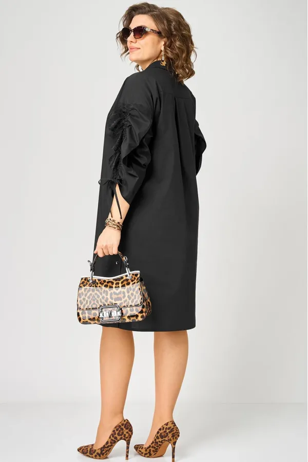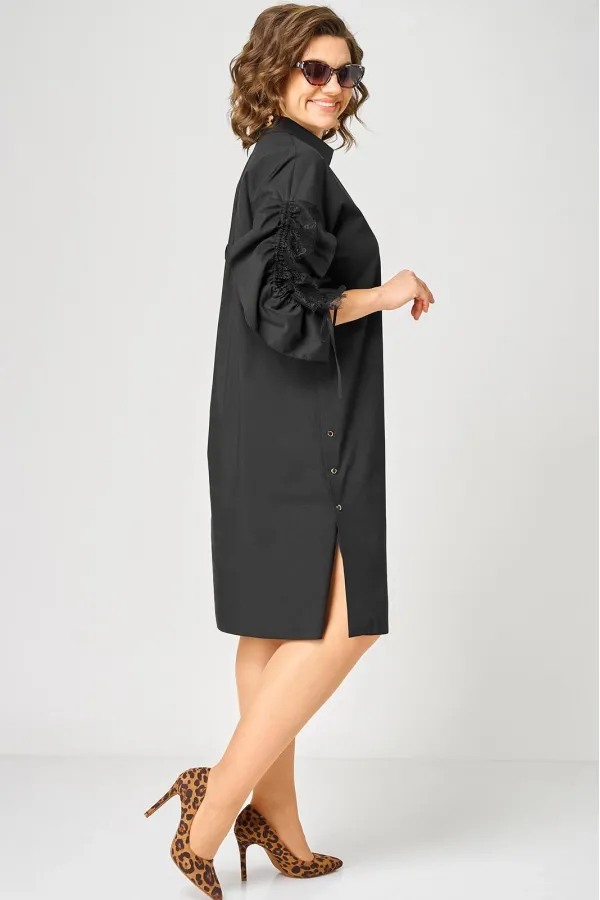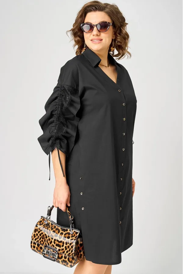 Платье стильное молодежное женское нарядно повседневное прямого силуэта выполнено из хорошего красивого хлопка в сочетании с отделкой из хлопка. Вырез горловины фигурный, воротник на стойке, плечо спущенное рукав втачной . По центру рукава настрочена отделочная деталь и втянута кулиса для регулировки рукава на нужную длину, что придает изделию стильный и шикарный современный образ. Застежка центральная на обметанные петли и пуговицы, в боковых швах обработаны шлицы и пришиты отделочные пуговицы, что придает модели при всей элегантности и кокетливый образ. По спинке отрезная кокетка и встречная складка за счет которой спинка слегка расширена.