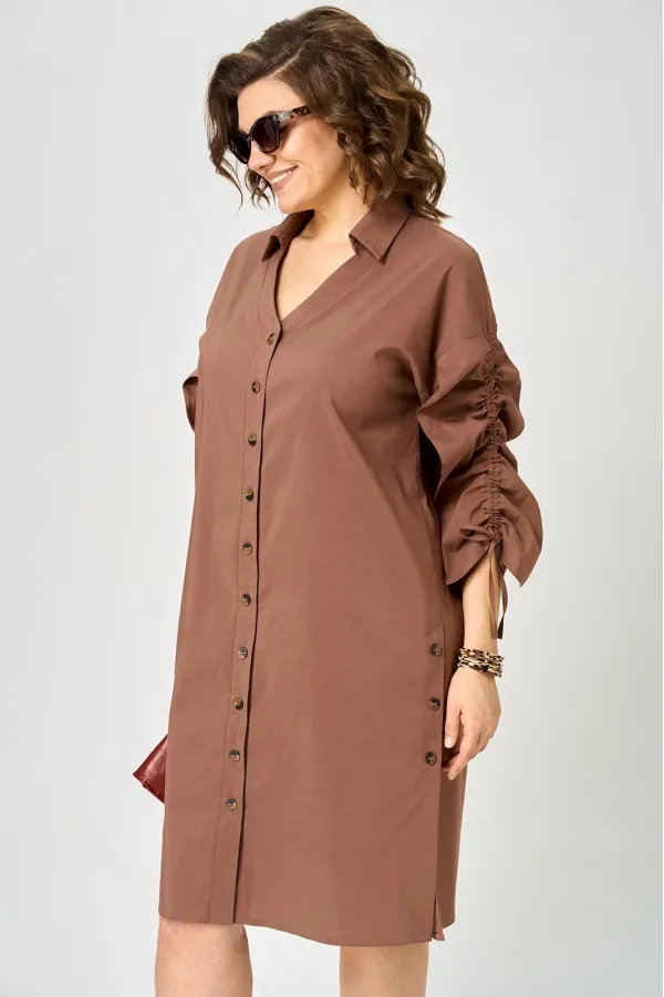 Платье стильное молодежное женское нарядно повседневное прямого силуэта выполнено из хорошего красивого хлопка в сочетании с отделкой из хлопка. Вырез горловины фигурный, воротник на стойке, плечо спущенное рукав втачной . По центру рукава настрочена отделочная деталь и втянута кулиса для регулировки рукава на нужную длину, что придает изделию стильный и шикарный современный образ. Застежка центральная на обметанные петли и пуговицы, в боковых швах обработаны шлицы и пришиты отделочные пуговицы, что придает модели при всей элегантности и кокетливый образ. По спинке отрезная кокетка и встречная складка за счет которой спинка слегка расширена.