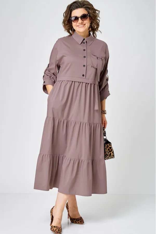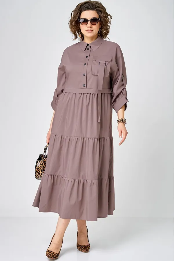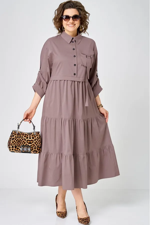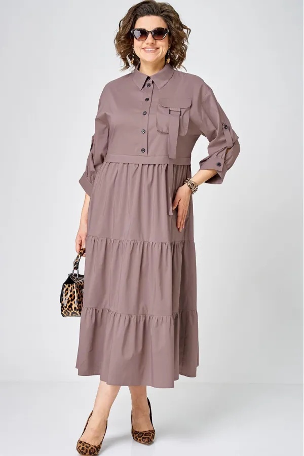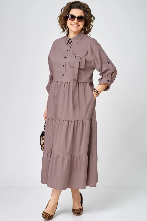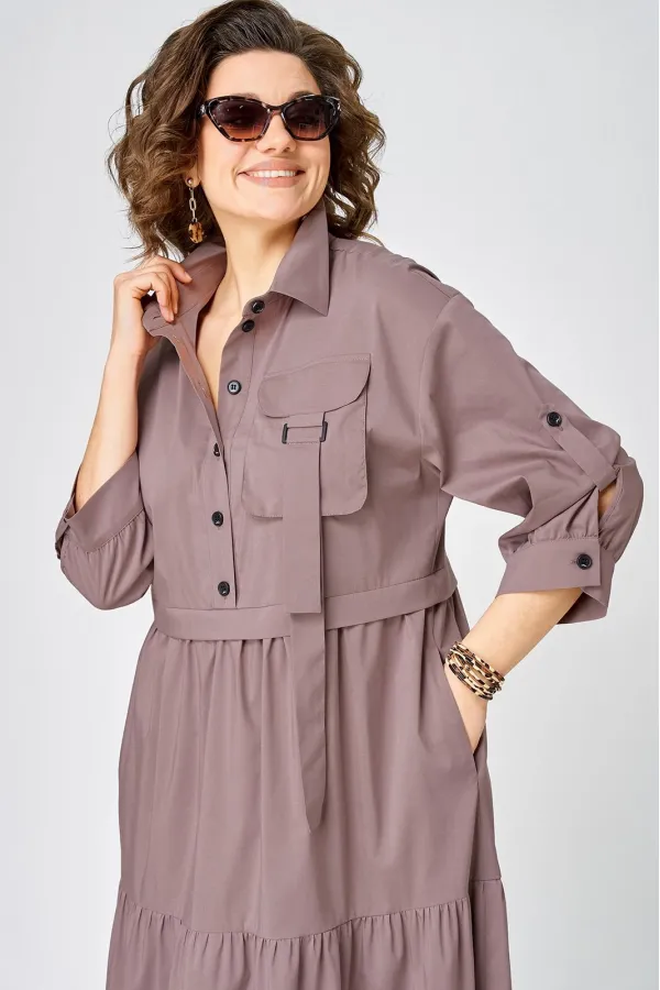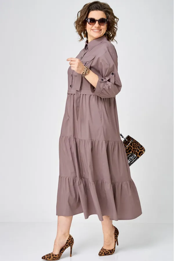 Платье нарядно-повседневного стиля, выполненная из качественного однотонного хлопка. Удобный и стильный дизайн модели для любого случая. Платье полуприлегающего силуэта с расширенной юбкой создаёт легкость и изящество. Воротник-стойка рубашечного типа и застежка планка на пуговицах придают модели классический вид, а спущенное плечо и рукав с регулируемой патой добавляют функциональности. Особый шарм платью придают три волана на юбке и накладной карман с пряжкой. Подходит для круглогодичного сезона и станет идеальным выбором как для работы, так и для отдыха. Красивый цвет позволяет легко сочетать платье с различными аксессуарами.