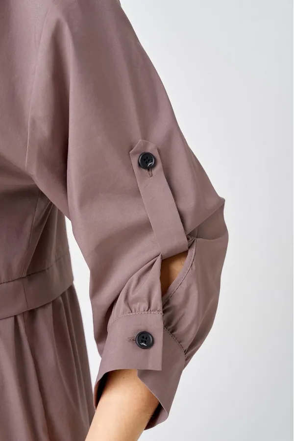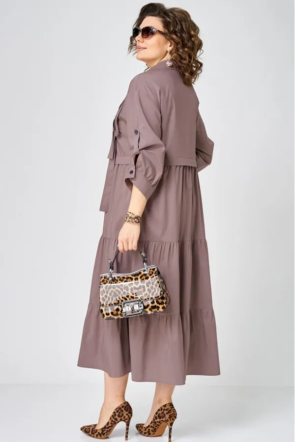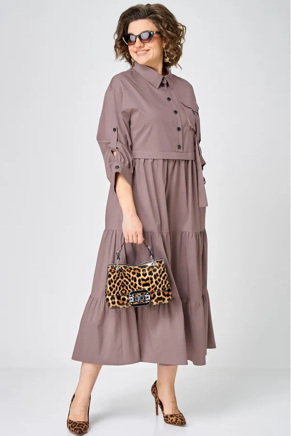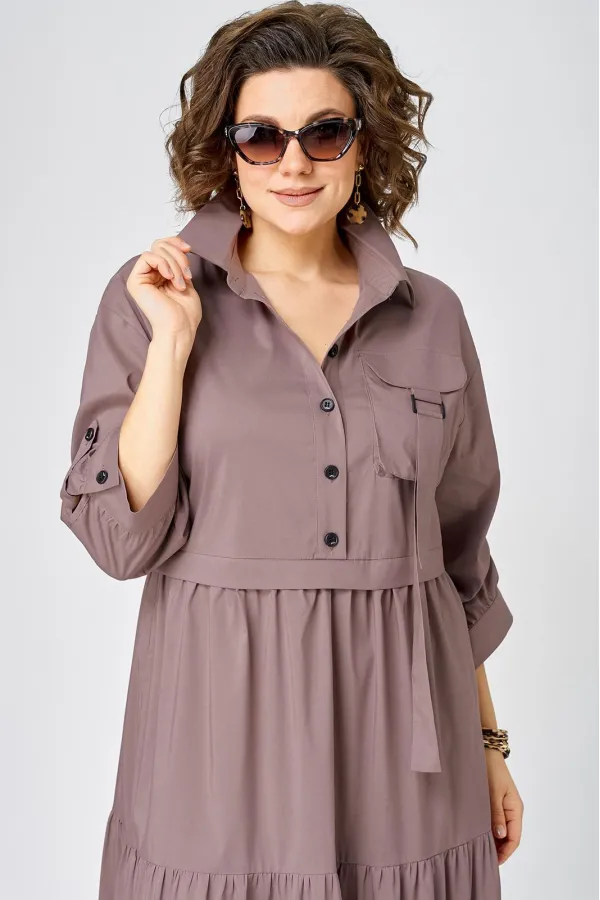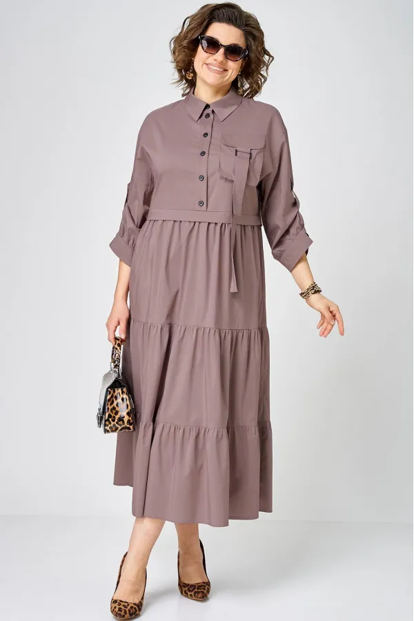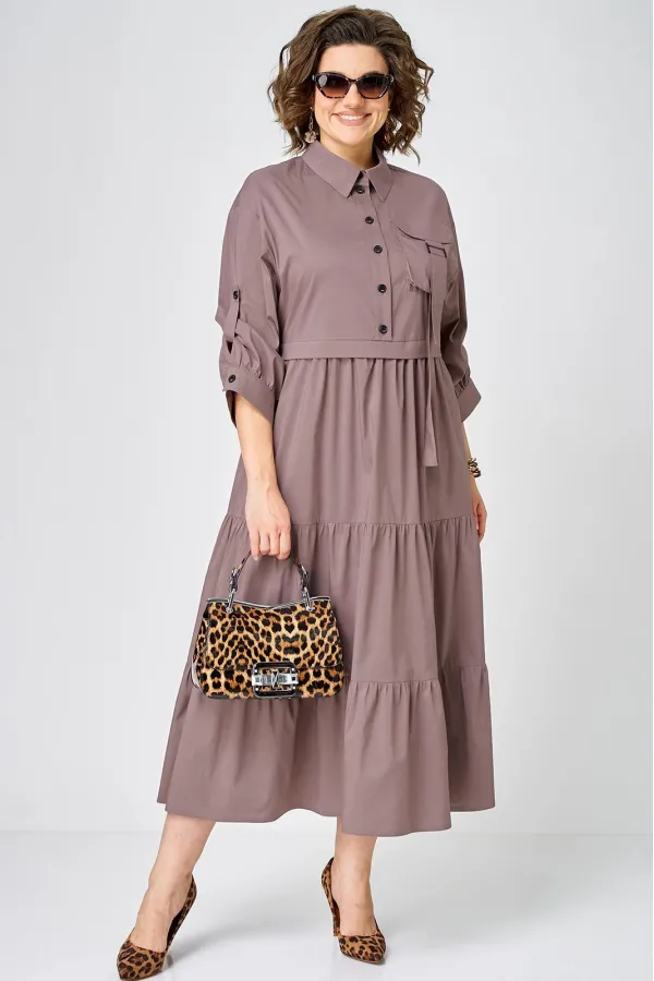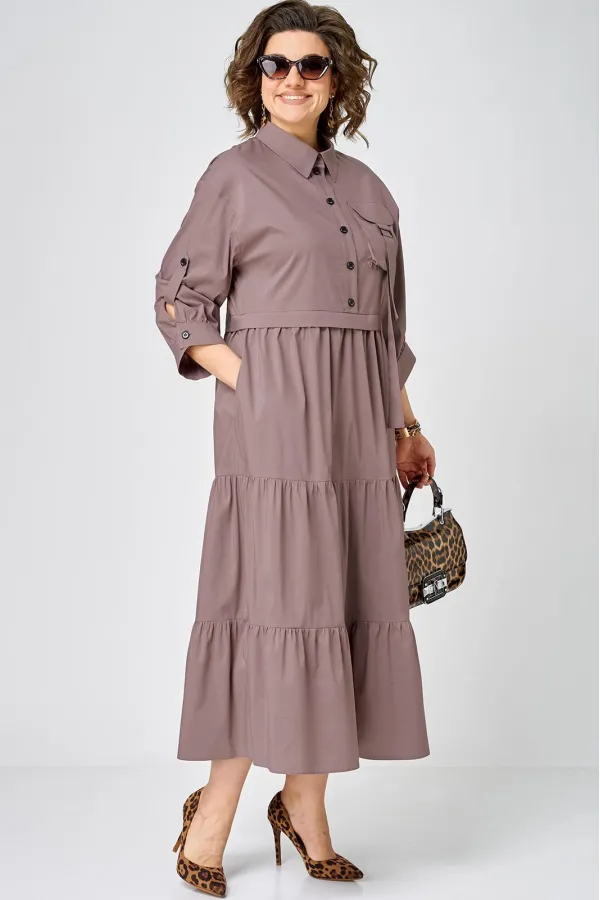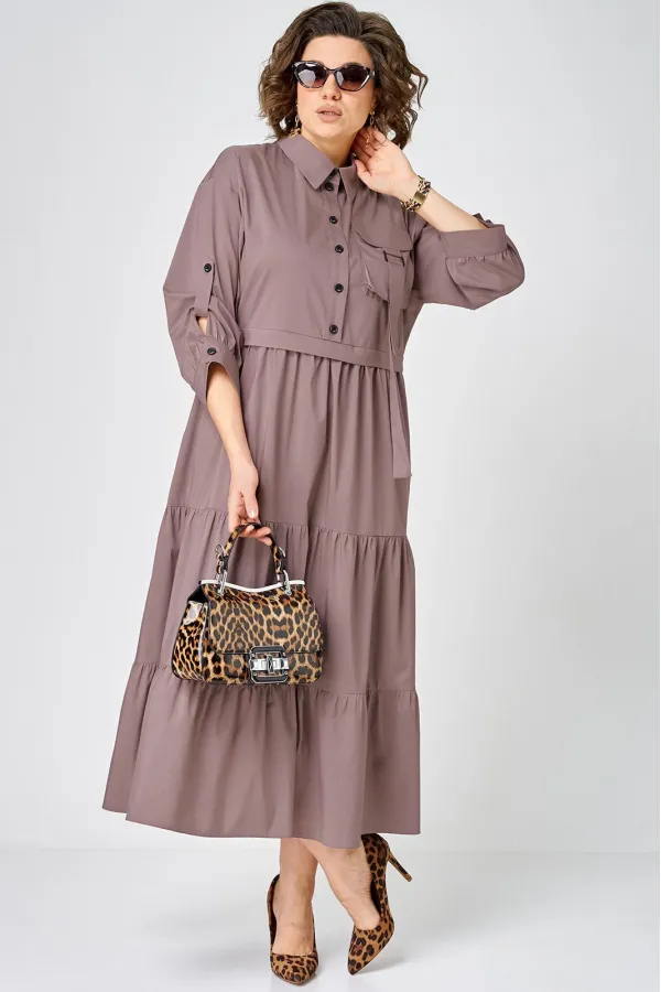 Платье нарядно-повседневного стиля, выполненная из качественного однотонного хлопка. Удобный и стильный дизайн модели для любого случая. Платье полуприлегающего силуэта с расширенной юбкой создаёт легкость и изящество. Воротник-стойка рубашечного типа и застежка планка на пуговицах придают модели классический вид, а спущенное плечо и рукав с регулируемой патой добавляют функциональности. Особый шарм платью придают три волана на юбке и накладной карман с пряжкой. Подходит для круглогодичного сезона и станет идеальным выбором как для работы, так и для отдыха. Красивый цвет позволяет легко сочетать платье с различными аксессуарами.