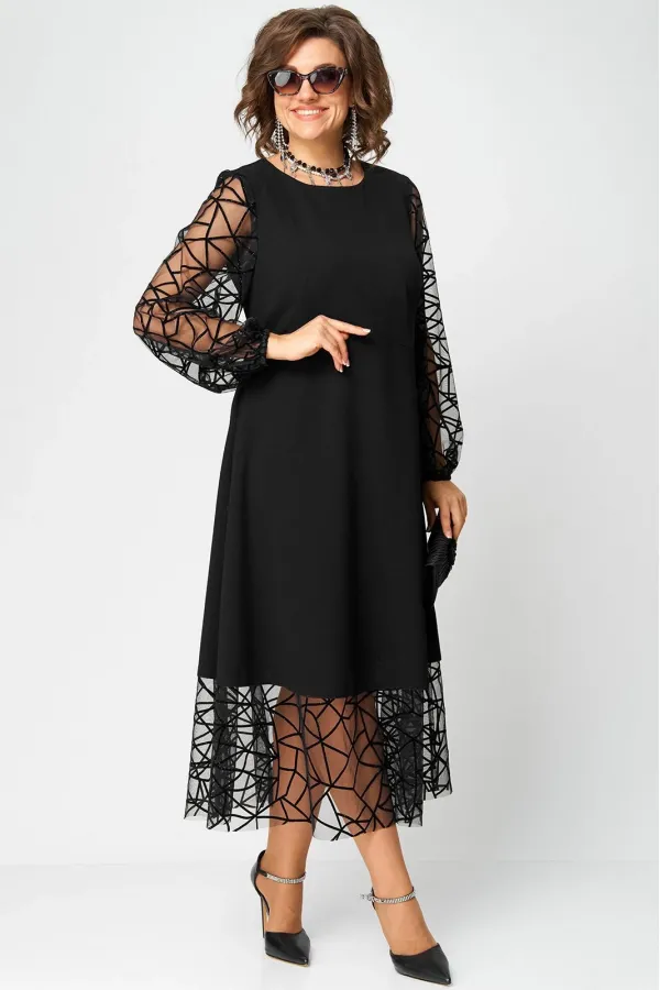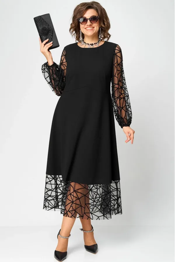Платье шикарное женское нарядное вечернее полуприлегающего силуэта расширенное к низу, выполнено из плательного крепа в сочетании с сеткой с принтом в виде паутинки. Вырез горловины круглый на обтачке, по пинке застежка ... Читать далее...
