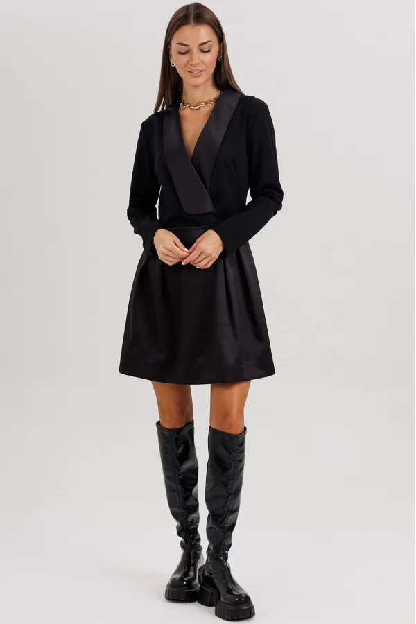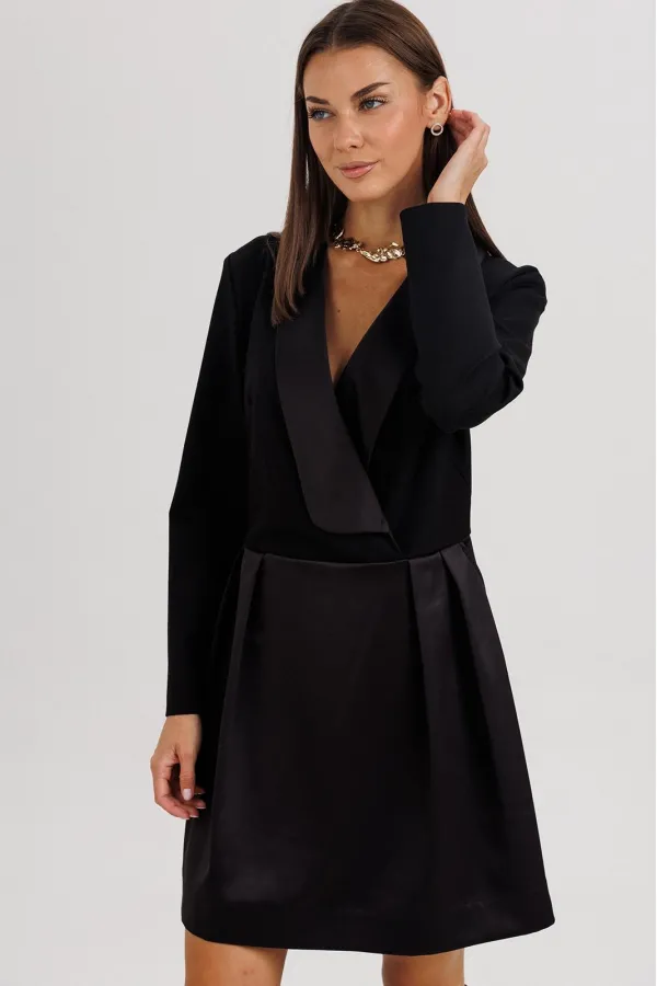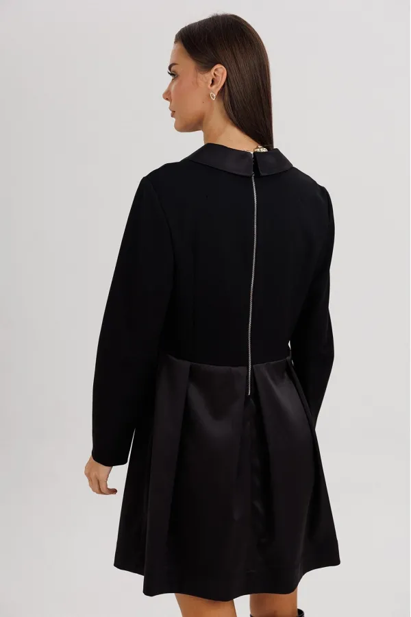 Элегантное платье прилегающего силуэта, созданное для тех, кто ценит стиль, утончённость и безупречное исполнение. Втачной крой гармонично подчеркивает фигуру, а акцентная отделка из атласного полотна придаёт образу изысканный блеск.