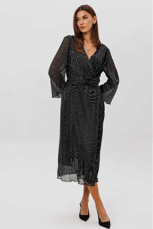 Женственный силуэт, подчеркивающий линию талии, и невероятная фактура гофрированного полотна делают эту модель не только изысканно-красивой, но и мега удобной.