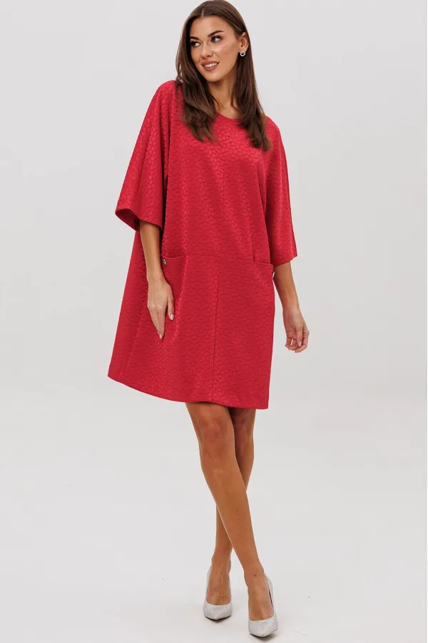 Стильное платье из жаккардового трикотажа — идеальный баланс комфорта и структуры. Фактурное полотно держит форму, создавая чистый силуэт, а свободный крой и функциональные карманы добавляют расслабленную лёгкость. Модель, которая моментально делает образ современным и уверенным.