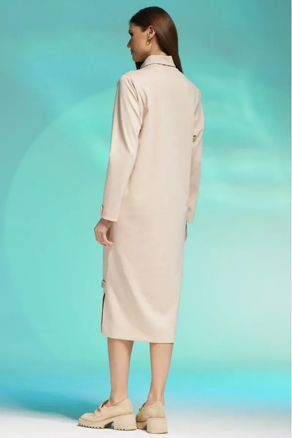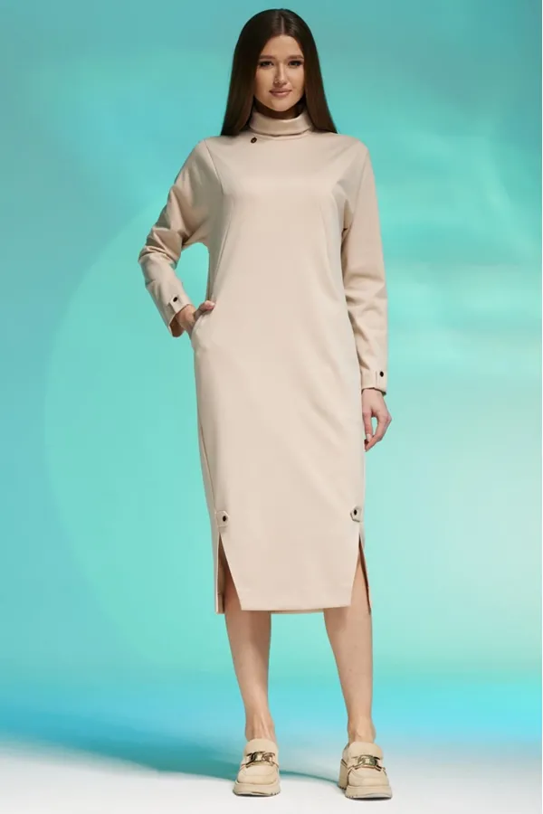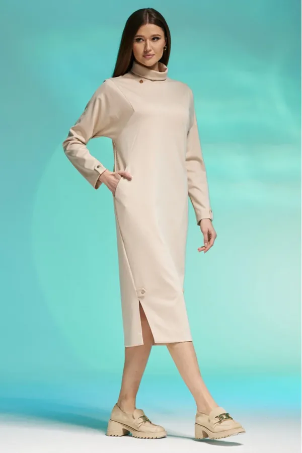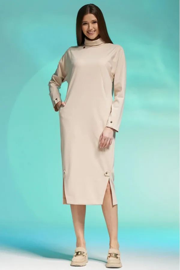 Дополнительное описание: платье с подрезами по переду и карманами. По низу платья- разрезы. По низу рукавов и разрезов- декоративные паты с кнопкой.