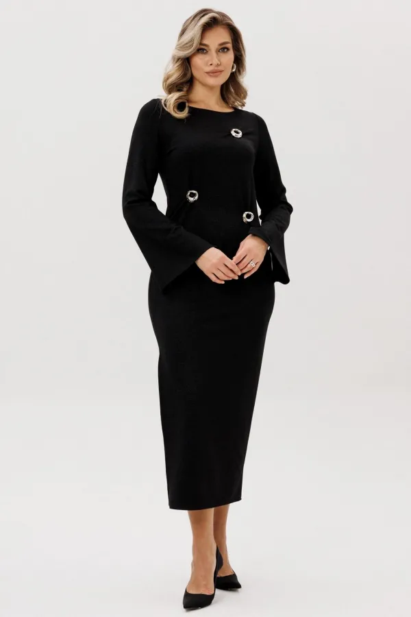 Gлатье из трикотажного полотна с добавлением люрексовой нити. Рукав втачной, расширенный книзу.В комплект входят съемные броши. Силуэт: полуприлегающий Вырез горловины: округлый... Читать далее...