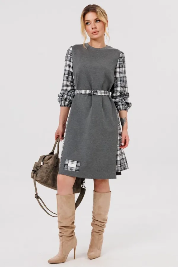 Комплектация: платье, пояс Силуэт: Свободный Вырез горловины: округлый Дополнительное описание: платье из двух видов ткани, разноуровневой длины,с функциональными карманами. Изделие без подкладки. В комплект входит п... Читать далее...