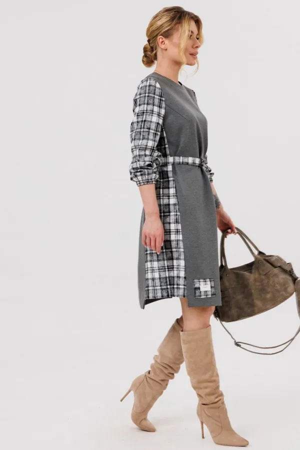 Дополнительное описание: платье из двух видов ткани, разноуровневой