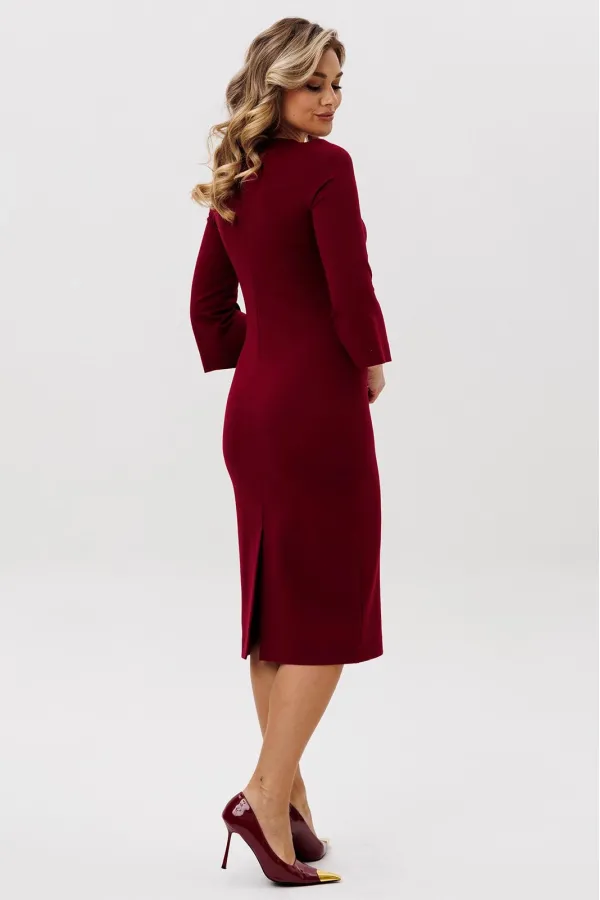 Силуэт: прилегающий Вырез горловины: округлый Дополнительное описание: Платье из эластичного трикотажа премиального качества, рукава 3/4 с небольшими декоративными разрезами. Спинка со шлицей в среднем шве. Изюмин... Читать далее...