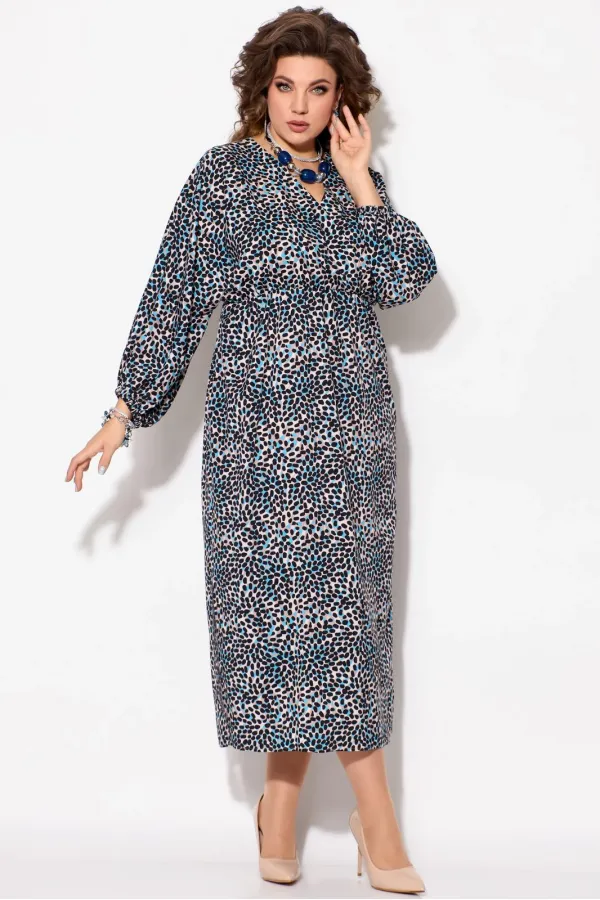 Элегантное женское платье Лютица, длина миди. Прямого силуэта. Горловина V-образной формы, на запах. Выше линии талии обработан подрез. Верхняя часть платья собрана на резинку. Рукав цельнокроеный, длинный, расширенный к... Читать далее...