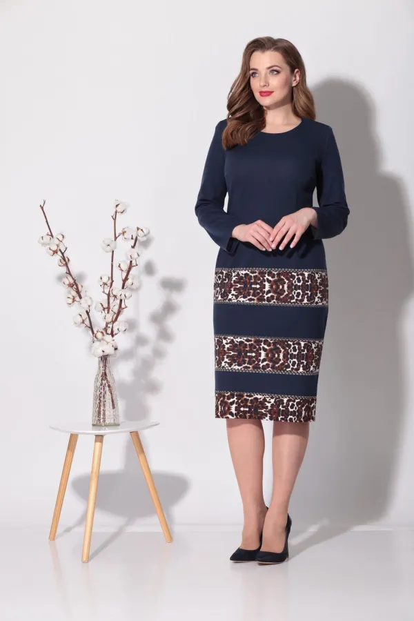 Платье осень- зима, полуприлегающего силуэта. Из приятного и уютного качественного трикотажа. Красивое сочетание цветов в горизонтальных полосках делает платье нарядно-повседневным. Рукав втачной 3/4. Длина платья по спинке в размерах, 46-50: 98 см (+/- 1 см), 52-56: 104 см (+/- 1 см).