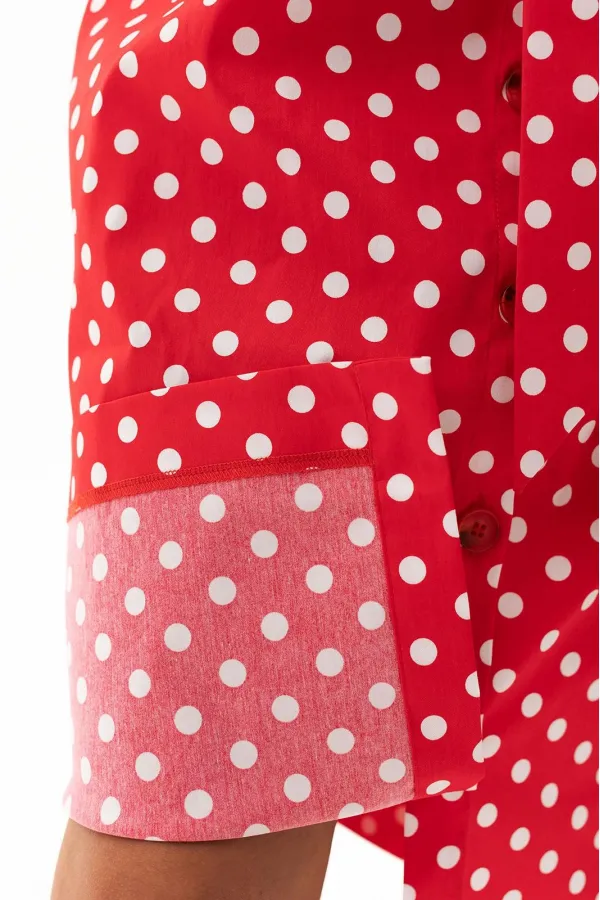 Платье с центральной застежкой на петли и пуговицы, с фигурным вырезом горловины. Платье отрезное по линии талии. Верхняя часть переда с рельефами, выходящими из горловины, нижняя часть переда с карманами и односторонним... Читать далее...