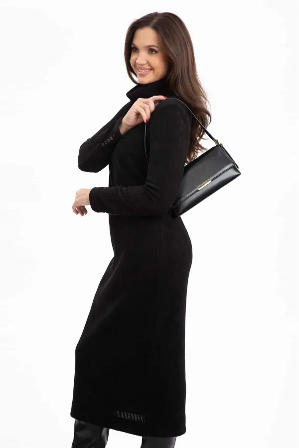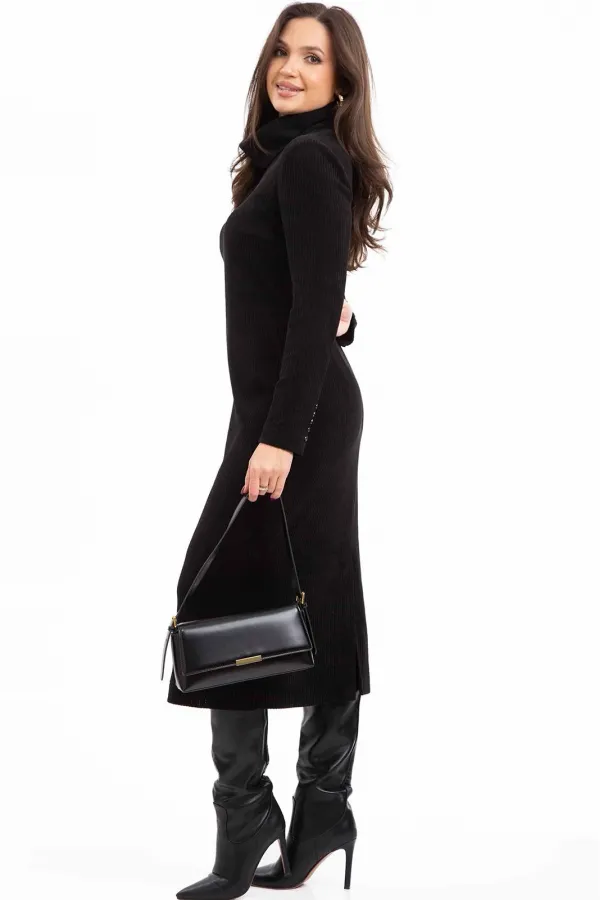 Платье без застежки, с отрезным воротником- хомут. Перед с нагрудными вытачками. Спинка с талиевыми вытачками, средним швом, заканчивающимся шлицей. Рукав втачной, длинный, двухшовный. Платье без подкладки.... Читать далее...