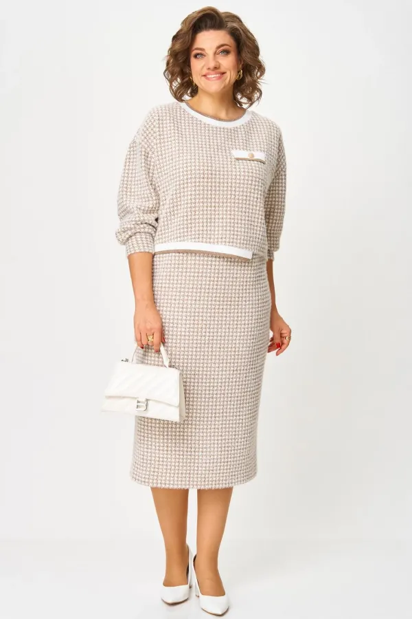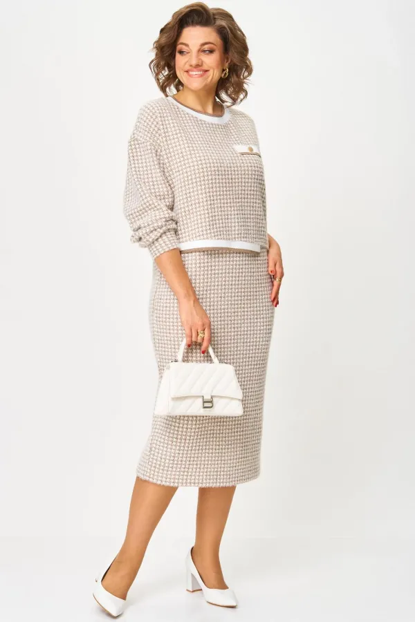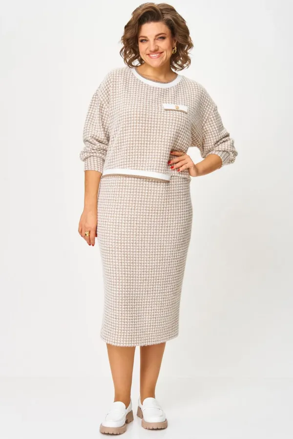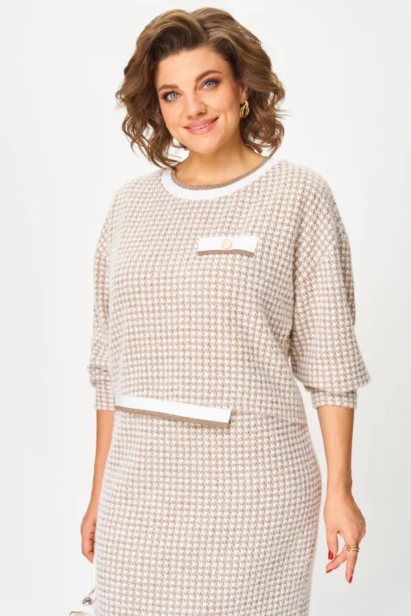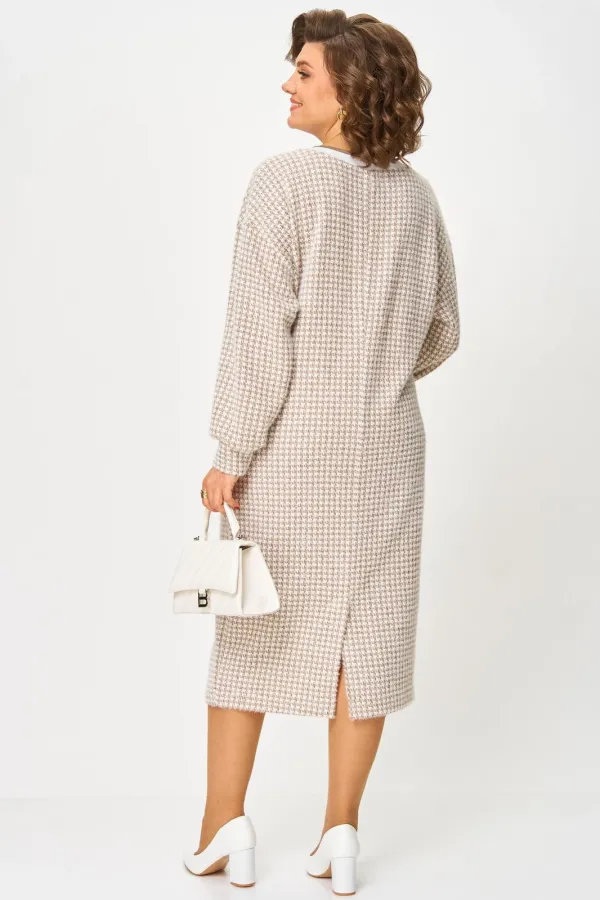 Платье женское. Выполнено из мягкого теплого трикотажного полотна средней плотности с небольшим ворсом. Не колется. Платье имитирует джемпер с юбкой. Перед платья частично ( верхняя часть) на подкладке. Силуэт платья: л... Читать далее...