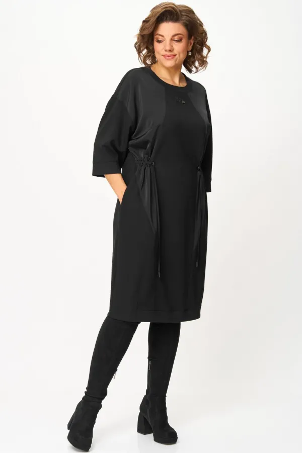 Платье женское, выполнено из трикотажного полотна с декоративными вставками из сатина в цвет основного полотна. Силуэт прямой, приталенный за счёт кулисы по передней части платья. Покрой свободный, линия плеча спущена. ... Читать далее...