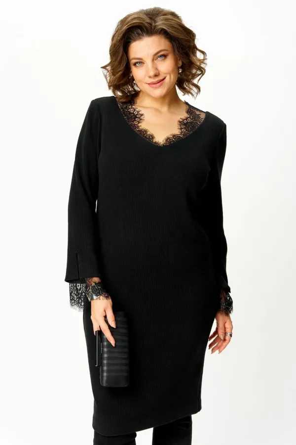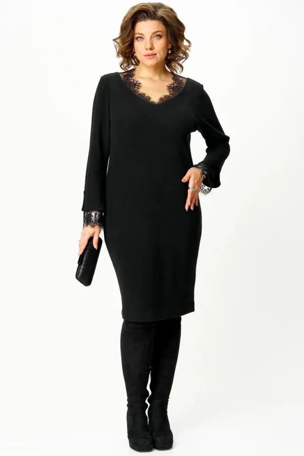 Платье выполнено из мягкого пластичного трикотажа. Платье подчеркивает талию и плавно облегающие бедра. По горловине платья выполнена отделка из качественного кружева-гипюр. Также кружево используется на манжете, которая... Читать далее...