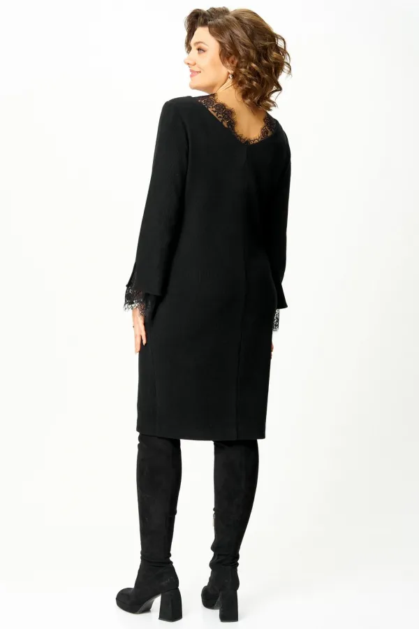 Платье выполнено из мягкого пластичного трикотажа. Платье подчеркивает талию и плавно облегающие бедра. По горловине платья выполнена отделка из качественного кружева-гипюр. Также кружево используется на манжете, которая частично прикрывает кисть. Это платье -идеальный компаньон для создания атмосферного, целостного образа. Оно говорит о тонком вкусе своей обладательницы, умеющей сочетать комфорт и утонченной романтикой.