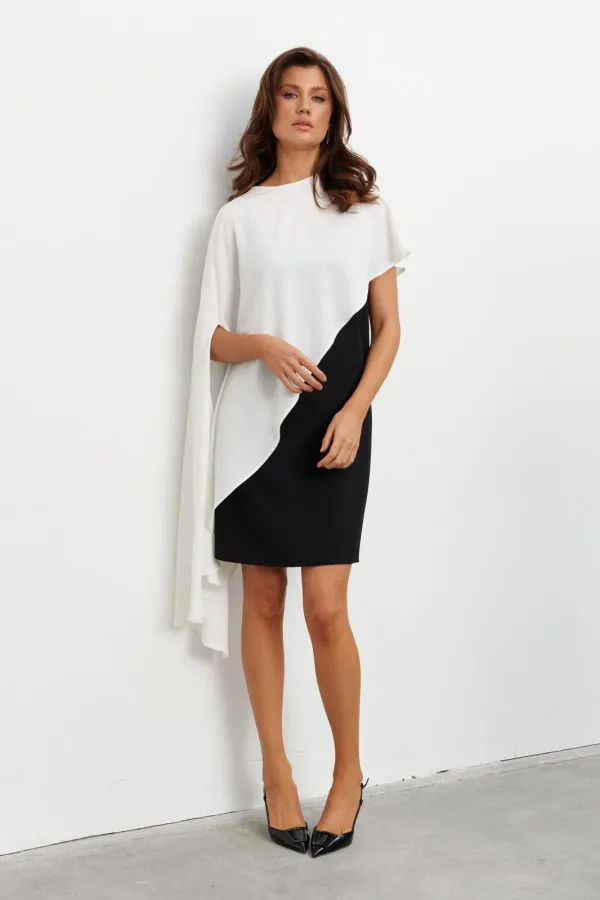 Комплект состоящий из платья-комбинации длиной мини и асимметричной блузки. Платье выполнено из струящейся ткани. Высота бретелей регулируется, в боковом шве потайная молния.