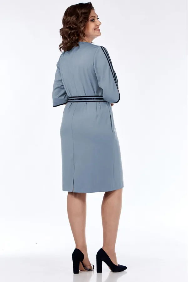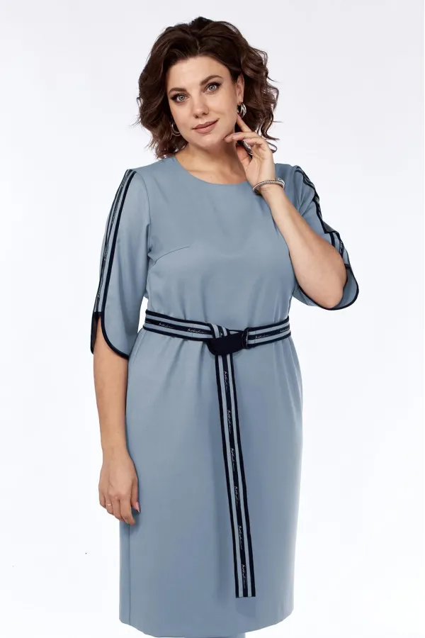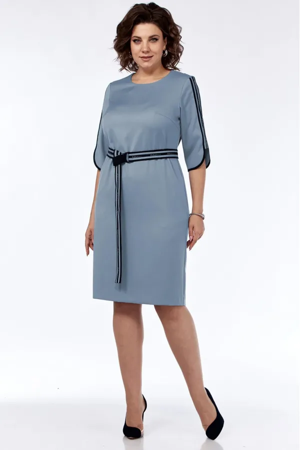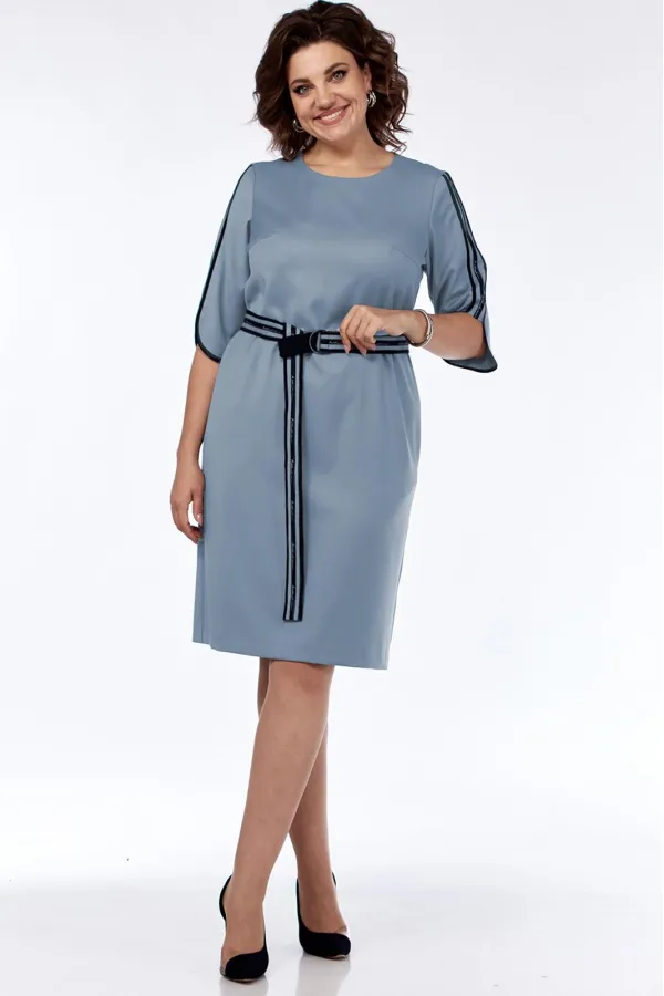 Платье женское от Леди - стиль классик. Платье женское стильное, прямого силуэта, из текстильного материала. С круглым вырезом горловины и карманами в боковых швах. Перед с нагрудными вытачками. Спинка с потайной молнией в среднем шве и разрезом в среднем шве. Рукава втачные, одношовные, фигурные по низу, с отделочной деталью по центру и настрочной тесьмой, длиной до локтя. Платье комплектуется съемным поясом. Размеры 48-52: длина платья 101 см, длина рукава 17 см.