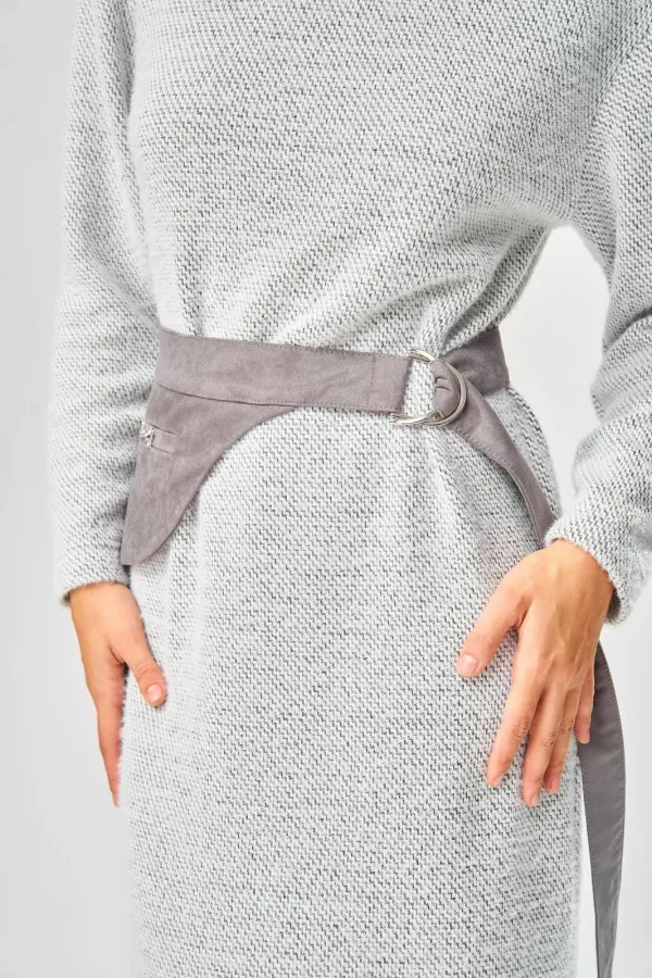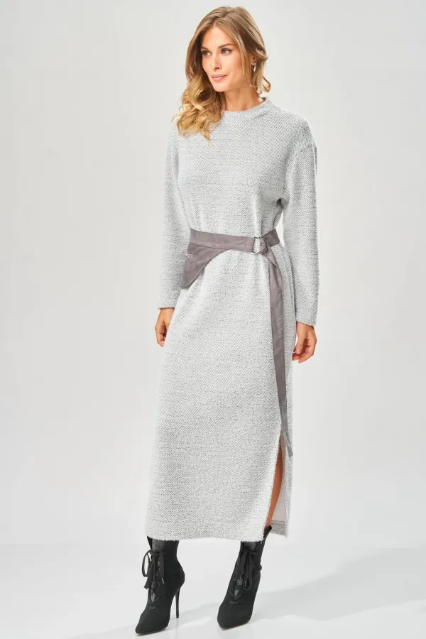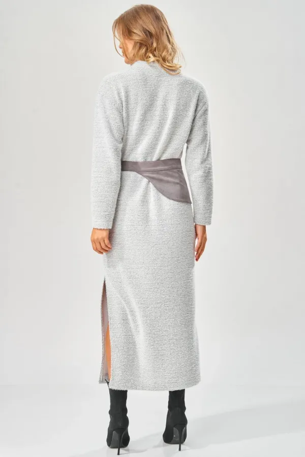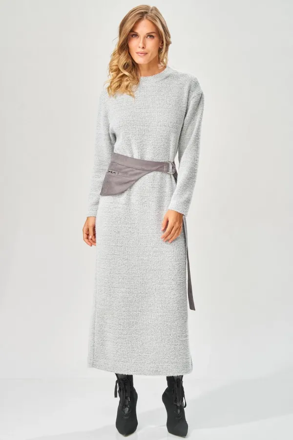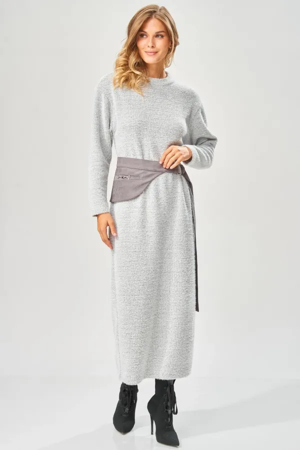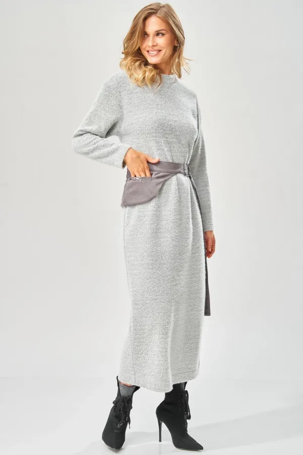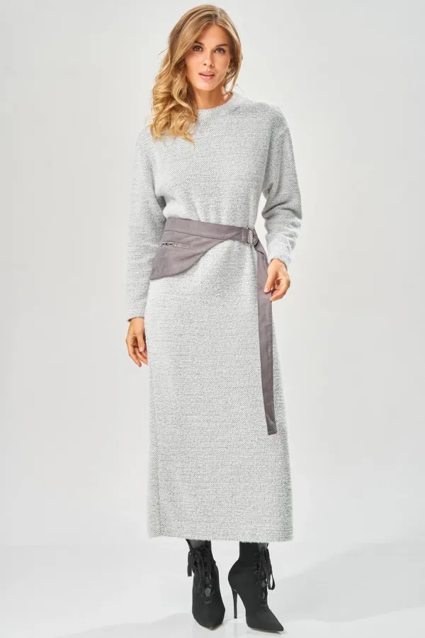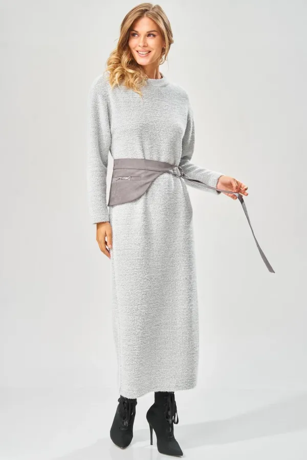 Уютное стильное повседневное платье длиной в пол с оригинальным поясом для осенне-зимнего сезона.