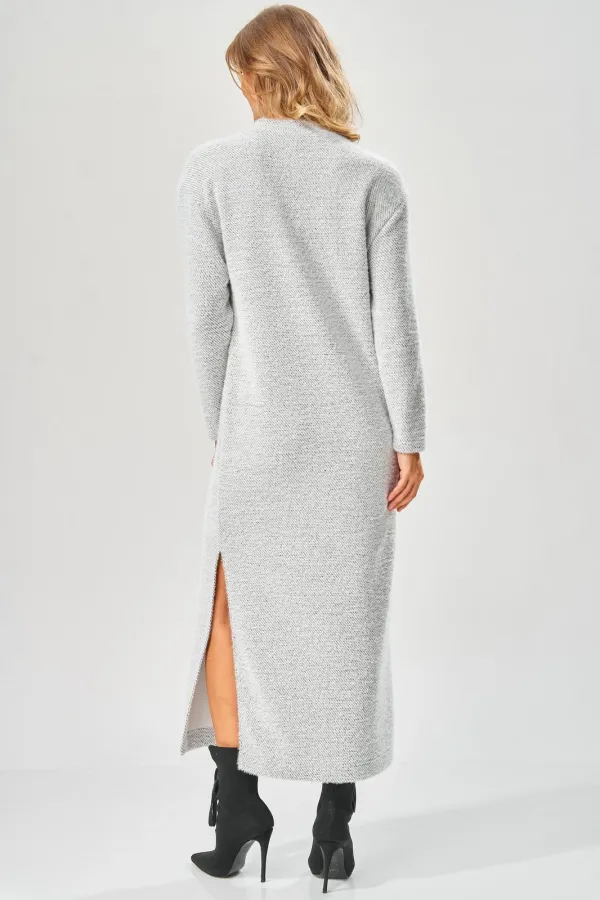 Трикотажное платье от Laikony прямого силуэта длиной макси. Вырез горловины округлой формы с втачной бейкой. Перед и спинка цельные. Рукава втачные одношовные длинные, линия плеча спущена. В левом боковом шве обработан р... Читать далее...
