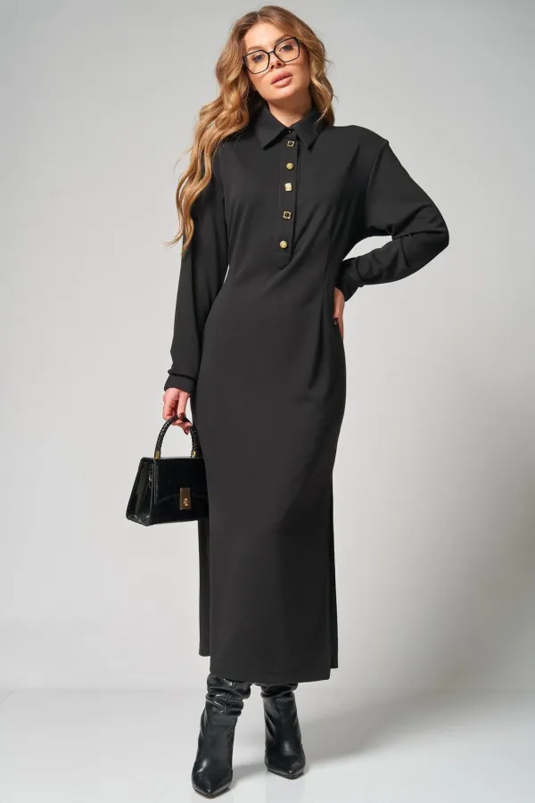 Трикотажное платье от Laikony полуприлегающего силуэта длиной макси. Вырез горловины округлой формы, воротник втачной с отрезной стойкой. Застежка на петли и пуговицы по планке и 1 петлю и пуговицу на стойке воротника. П... Читать далее...