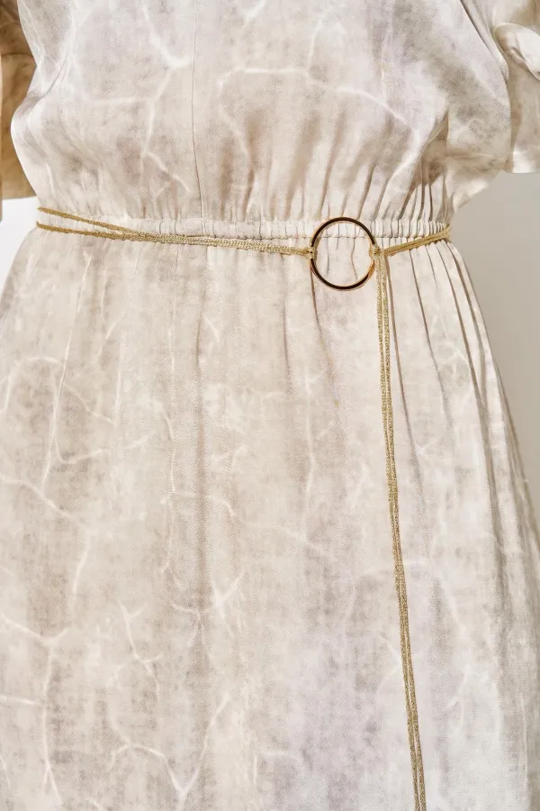 Особое внимание привлекает декорированный съемный пояс, который позволяет вам варьировать стиль и подчеркивать талию. Пояс идет в комплекте, декор может отличаться от представленного на фотографии.
