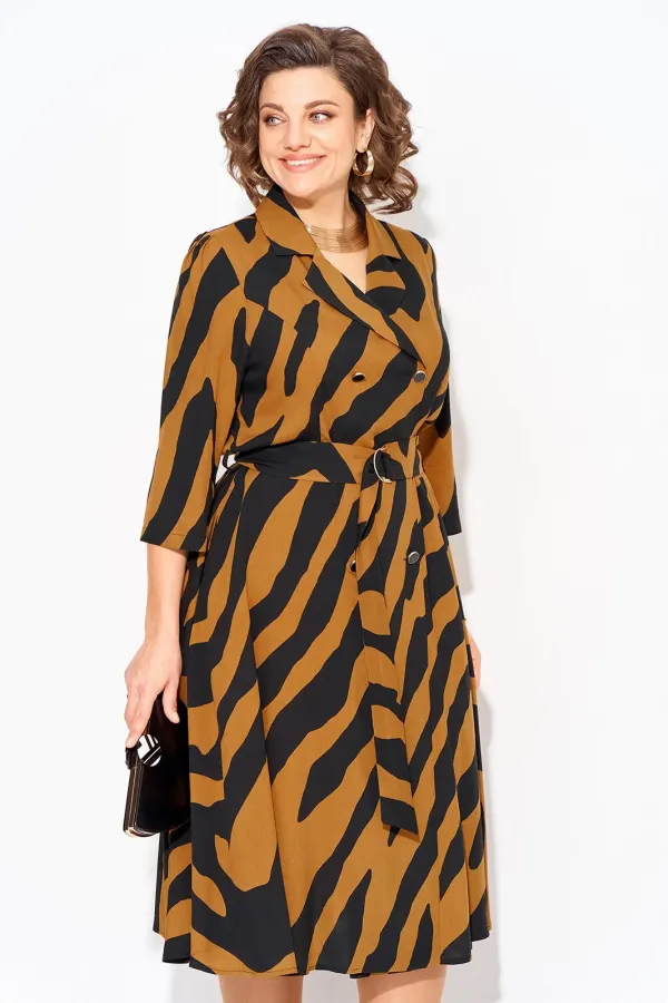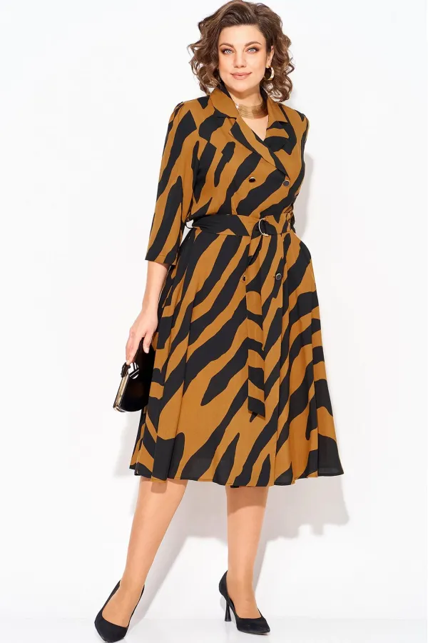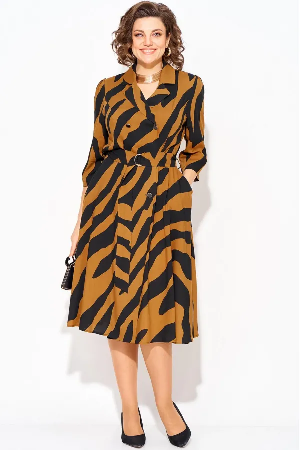 Стильное и элегантное платье с боковыми карманами подойдет для любого повода - от офисных встреч до праздничных торжеств. Английский отложной воротник переходит в двубортную застежку на декоративные пуговицы. По талии платье отрезное, юбка расклешена к низу. По спинке в области талии вставлена резинка для комфортного прилегания. Рукав вточной, длиной ¾-ти, у оката предусмотрена легкая сборка. В комплекте съемный пояс с пряжкой из основной ткани. Благодаря его универсальному дизайну прекрасно подчеркнет вашу фигуру и придаст ей изысканный образ. Подходит для высоких. Вырез на груди добавляет женственности и акцентирует внимание на декольте. В нем вы будете выглядеть нарядно и привлекать восхищенные взгляды окружающих.