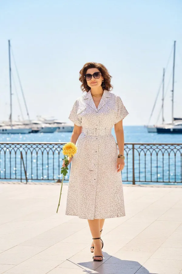 Эффектное платье в стиле сафари, идеальный выбор для жарких будней и не только! Модель трапециевидного силуэта, с аккуратным отложным английским воротником. Застежка центральная, на петли и пуговицы с подбортом. Линия пл... Читать далее...