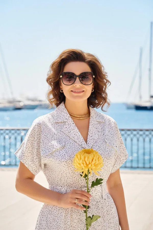 Эффектное платье в стиле сафари, идеальный выбор для жарких будней и не только! Модель трапециевидного силуэта, с аккуратным отложным английским воротником. Застежка центральная, на петли и пуговицы с подбортом. Линия плеча спущена, переходит в цельнокроеный рукав с отрезными манжетами. Предусмотрены декоративные паты на рукавах и поясе! Платье с боковыми карманами. В комплект входит съемный пояс с роговой пряжкой в тон пуговиц. Модель доступна в больших размерах и подойдет для высоких и невысоких девушек. Это отличный вариант для повседневной носки, нарядного случая, а также для женщин, ценящих комфорт, элегантность и стиль. Длина по спинке – 120 см,