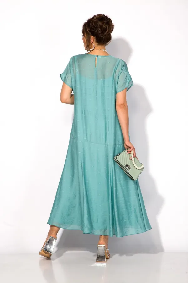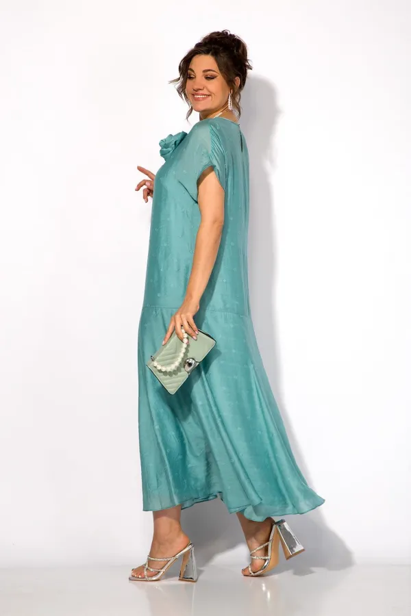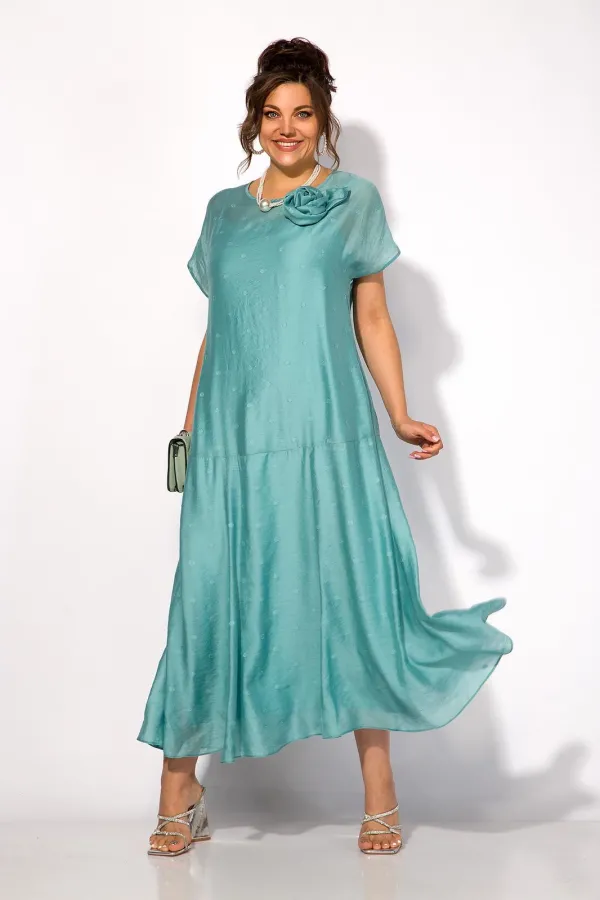 Именно это роскошное платье создано для женщин, которые хотят сиять и производить незабываемое впечатление. Оно станет вашим главным украшением и источником уверенности в любой праздничной обстановке. Платье свободного силуэта, с округлым вырезом горловины и цельнокроеным коротким рукавом. Чуть ниже линии бедер расклешено, создавая эффектный романтический образ. Линию лифа украшает съемная брошь в виде цветка. Основое платье имеет платье в виде подкладки выполненное из вискозы. Платье на регулируемых бретелях с боковыми разрезами, которое можно носить самостоятельно. Застежка по спинке на навесную петлю с пуговкой.