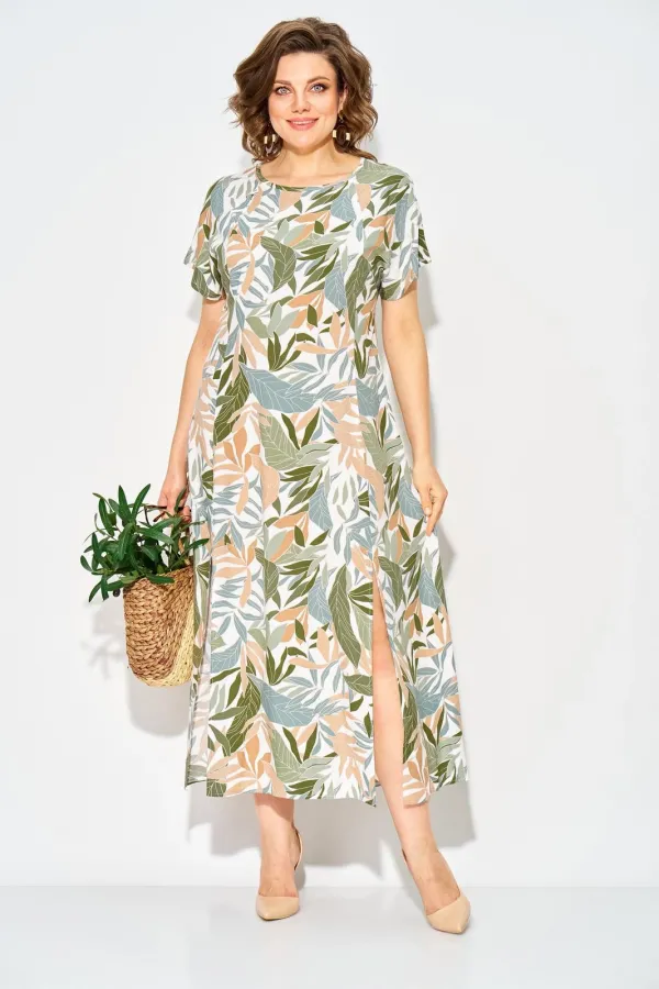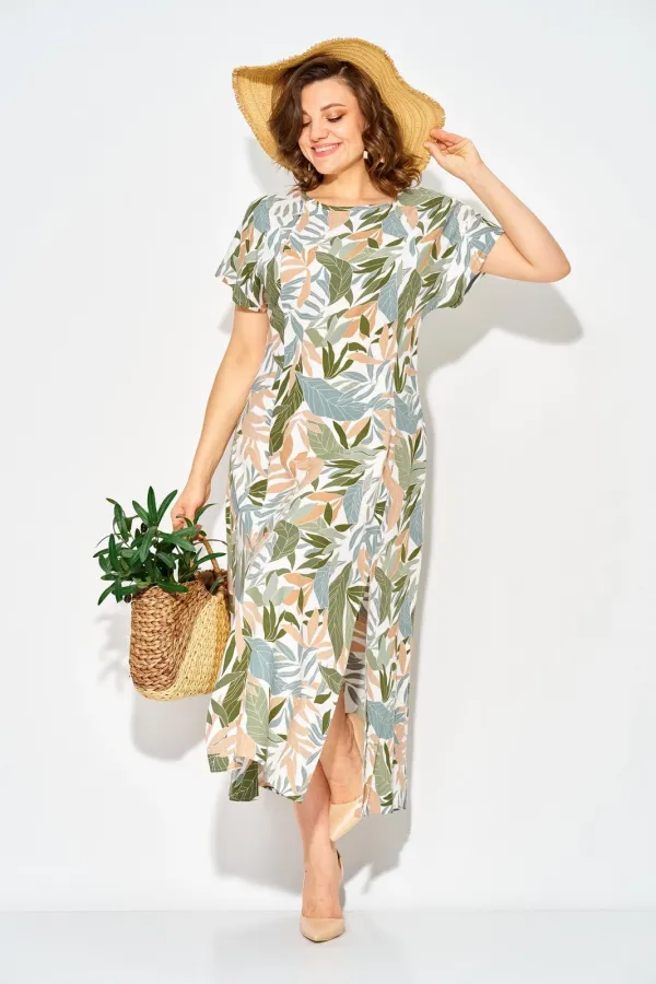 Модель летнего платья с продольными рельефами по полочке и спинке. Вырез горловины округлый. Рукав цельнокроеный слегка спущенный. По переду платья предусмотрены разрезы. Спинка с резинкой для более комфортного облегания. Это идеальный выбор для современной женщины, которая ценит комфорт, стиль и универсальность в себе!