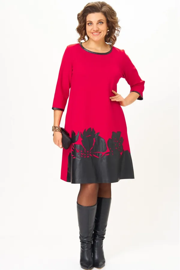 Идеальное сочетание элегантности и комфорта — это платье станет вашим незаменимым спутником как в офисе, так и на праздничных мероприятиях. Выполненное из мягкой, приятной на ощупь ткани, оно украшено изящной вышивкой «цветы» из эко-кожи, которая добавляет образу нотки роскоши и современного шика.