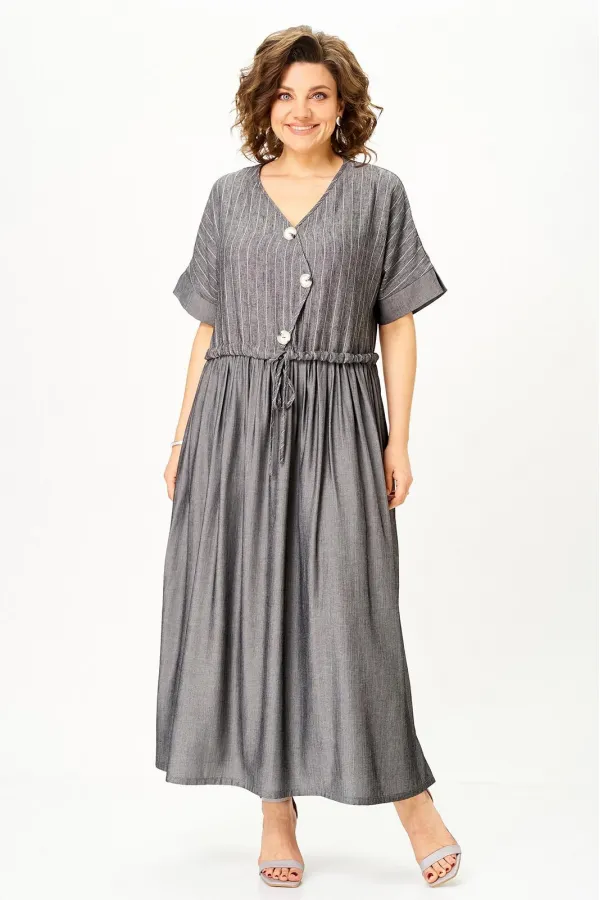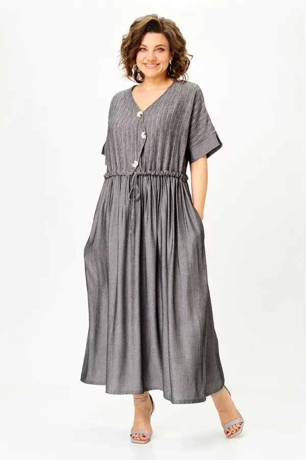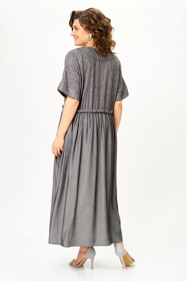 Стальной лен в полоску плюс темный графит» — must-have сезона, в котором сочетаются лёгкость, стиль и свобода движения. Модель легко трансформируется: носите свободно для бохо-образа или подчеркните талию поясом для более женственного силуэта.