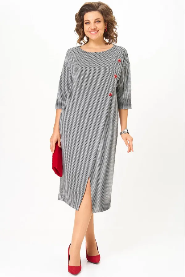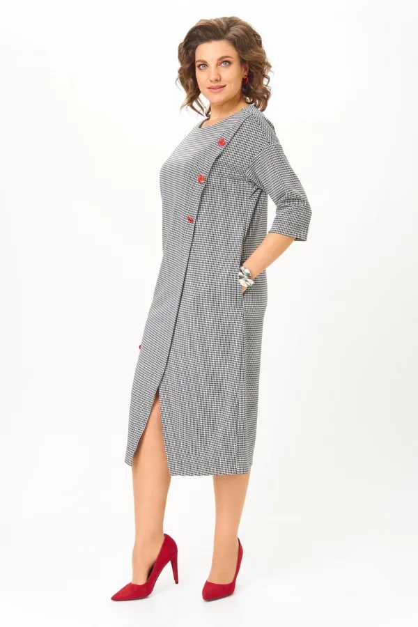 А имитация асимметричной застёжки с декоративными пуговицами добавляет изюминку и визуально вытягивает фигуру.