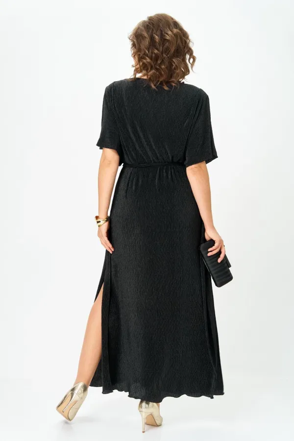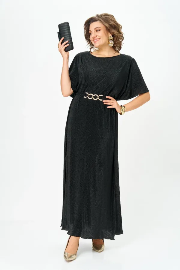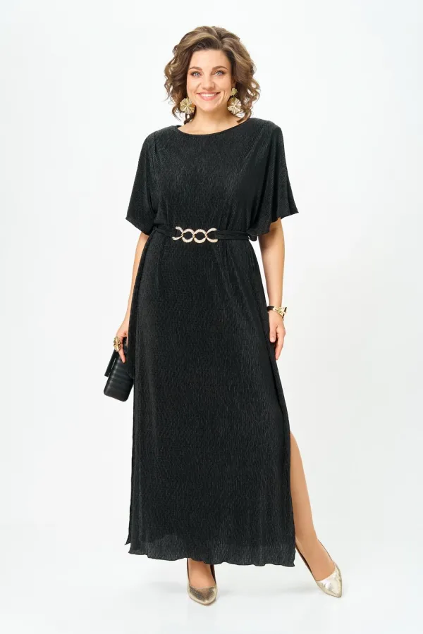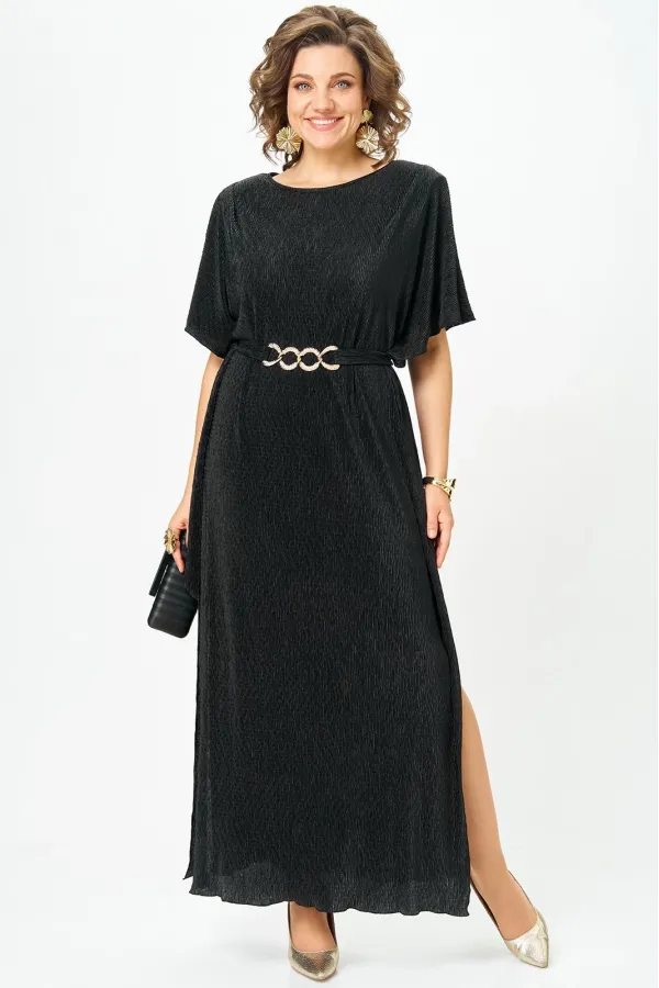 Элегантное вечернее платье в пол из струящейся ткани с эффектом жатки (кринкл). Лёгкая текстура создаёт красивое мерцание и динамику при каждом движении. Платье выполнено в лаконичном крое с двумя боковыми швами, которые формируют идеальный силуэт без лишних деталей. Пояс с декоративной пряжкой подчёркивает талию, а разрезы по бокам добавляют легкости и женственности.
