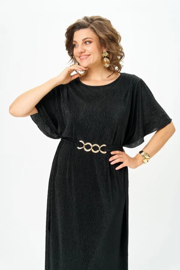 * Пояс с декоративной пряжкой аккуратно подчёркивает талию.