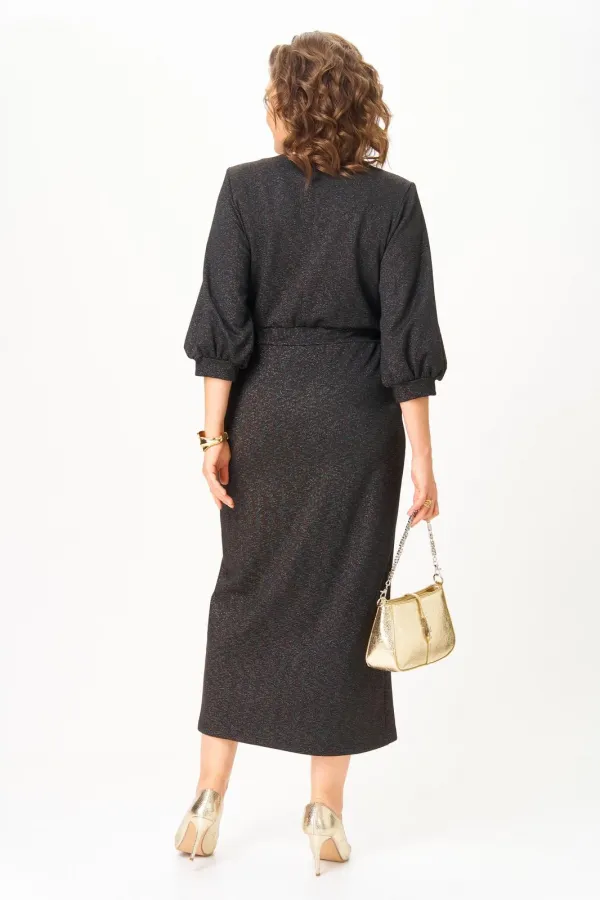 Приятный к телу трикотаж с деликатным мультиблеском *не струится, а драпируется*, создавая чёткую форму и ощущение дорогой, продуманной вещи. Запах выверен до миллиметра — он держит линию, подчёркивая собранность и уверенность образа.