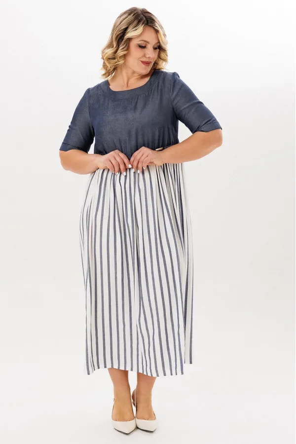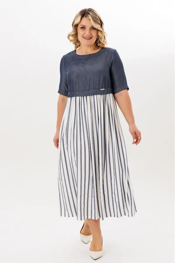 Платье с полоской и джинсовым верхом Идеальное сочетание тонкого денима и лёгкой полоски с деликатной металлической нитью. Нить проходит по контуру полос, создавая мягкий благородный блеск — ненавязчивый, но заметный в ... Читать далее...