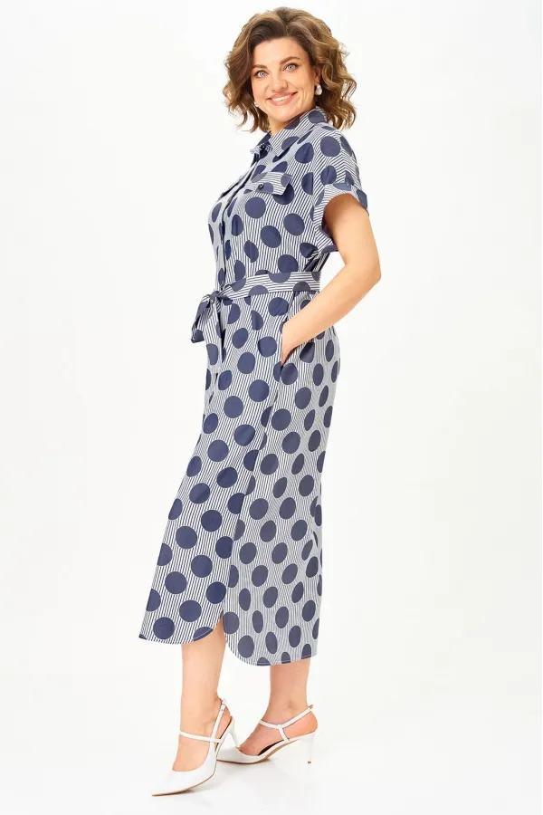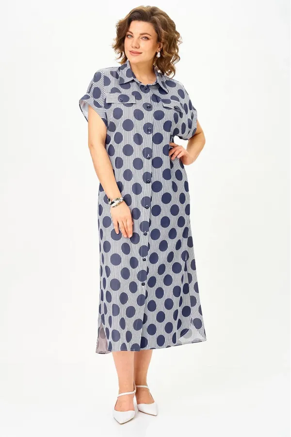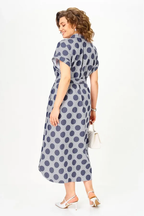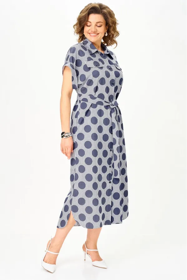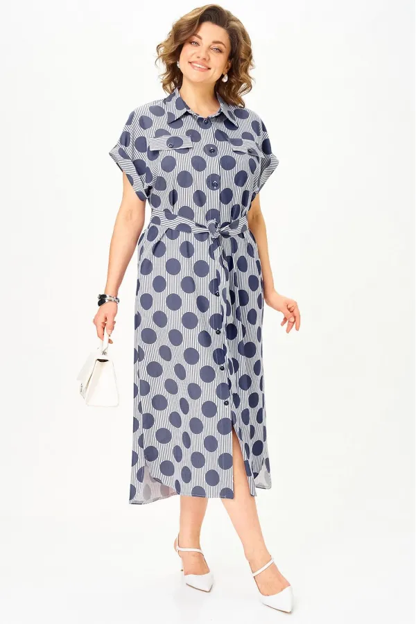 Платье-рубашка с актуальным принтом «полоска и горох» из тонкого денима — must-have сезона, который сразу собирает образ. Универсальная модель, свободная, с поясом, оверсайз, плюс сайз в которой не нужно думать, с чем сочетать — она уже работает за вас.